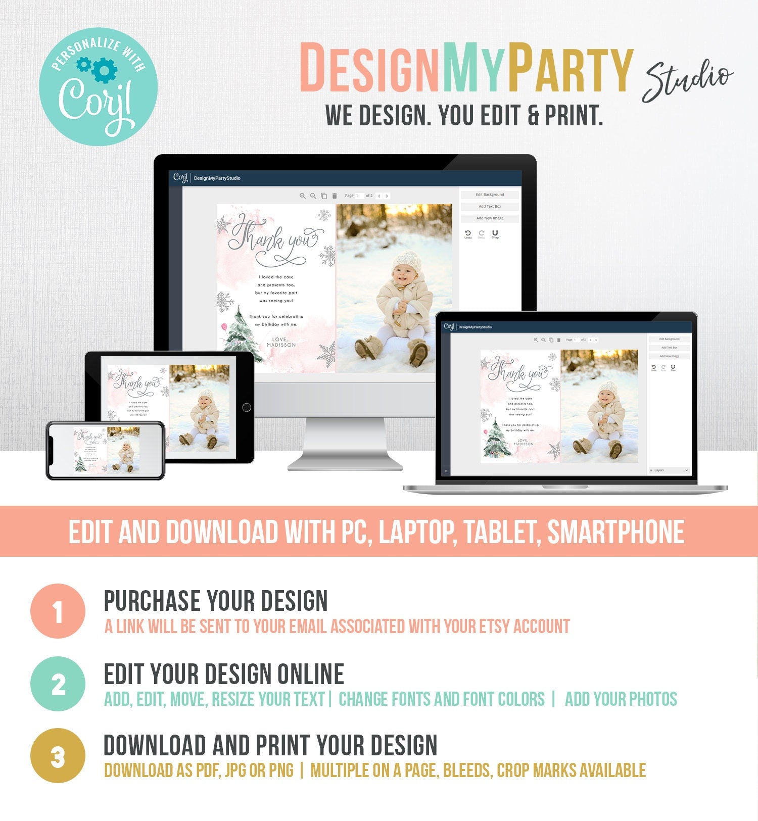 You will receive a link to edit your digital design, no printed items will be shipped!