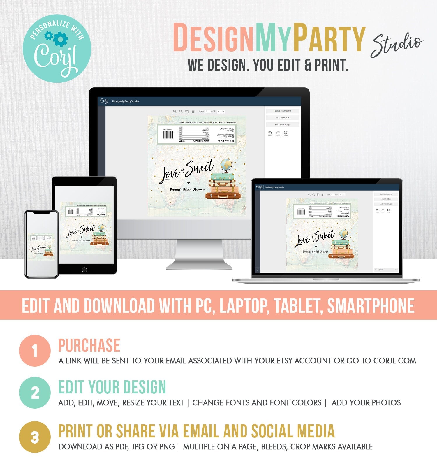 You will receive a link to edit your digital design, no printed items will be shipped!