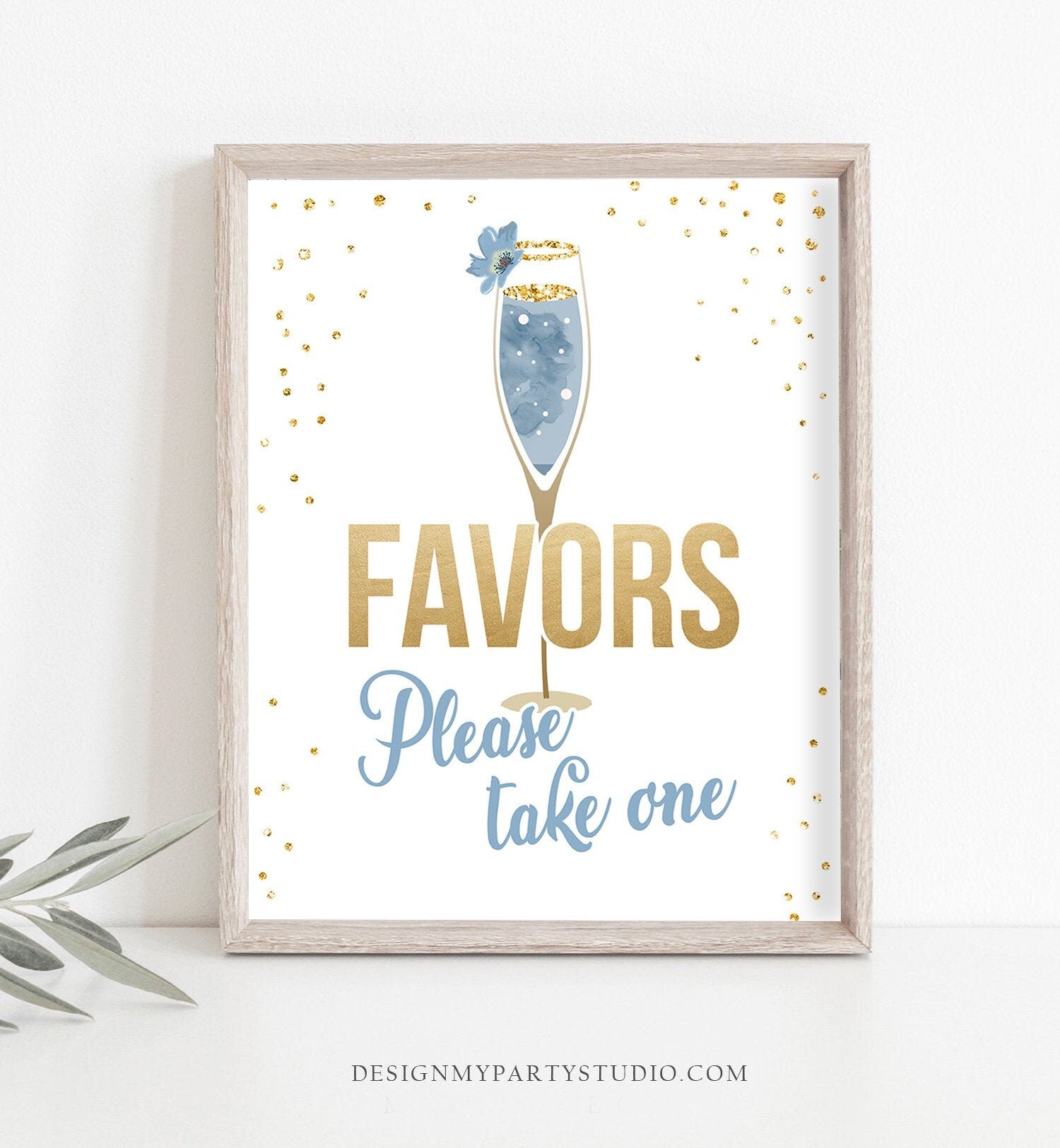 • Favors Sign Brunch and Bubbly Bridal Shower Blue Champagne Gold Confetti Take a Treat Thank You Sign Instant Download PRINTABLE 0150