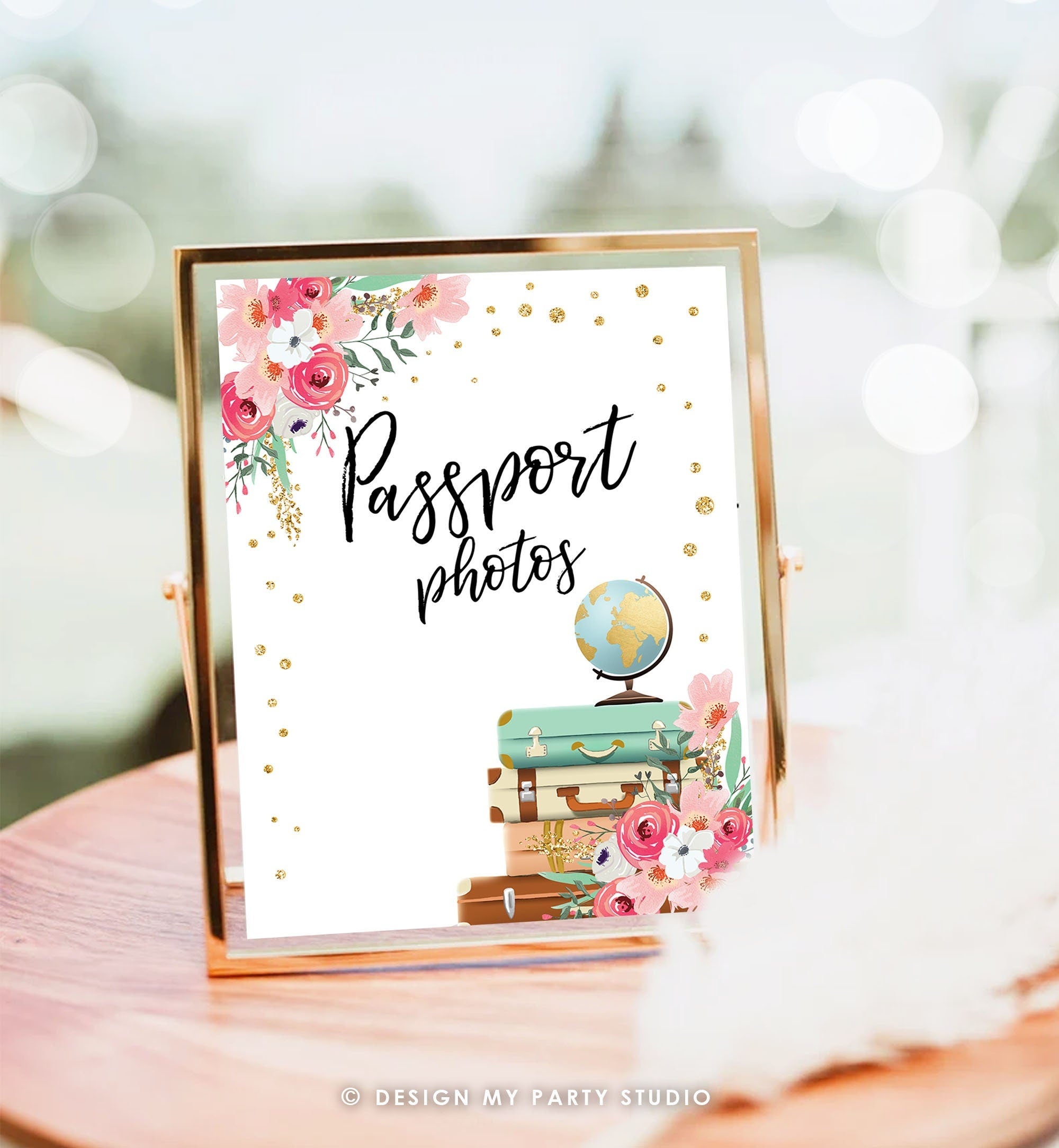 • Passport Photos Sign Travel Adventure Bridal Shower Wedding Photo Booth Sign Adventure Pink Gold Confetti Instant Download Printable 0030