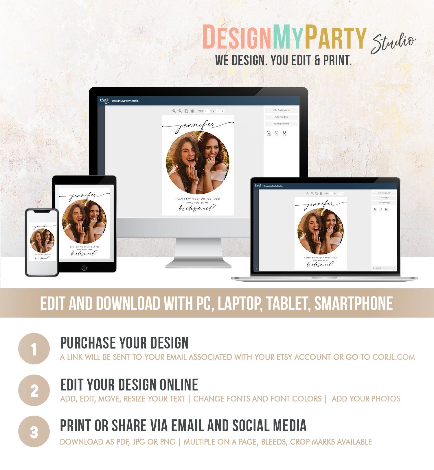 ★ A perfect way to ask your bridesmaid for your wedding and to save money by editing and printing the files yourself! Or send them as a digital card by emailing or texting your bridesmaid! ★