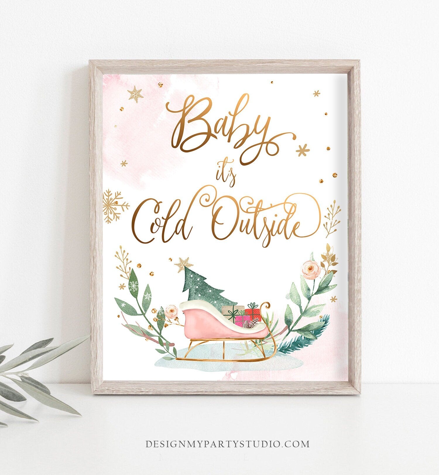 • Baby Its Cold Outside Sign Sleigh Baby Shower Sign Winter Decor Christmas 1st Girl Pink Gold Holidays Table Sign Digital Printable 0353