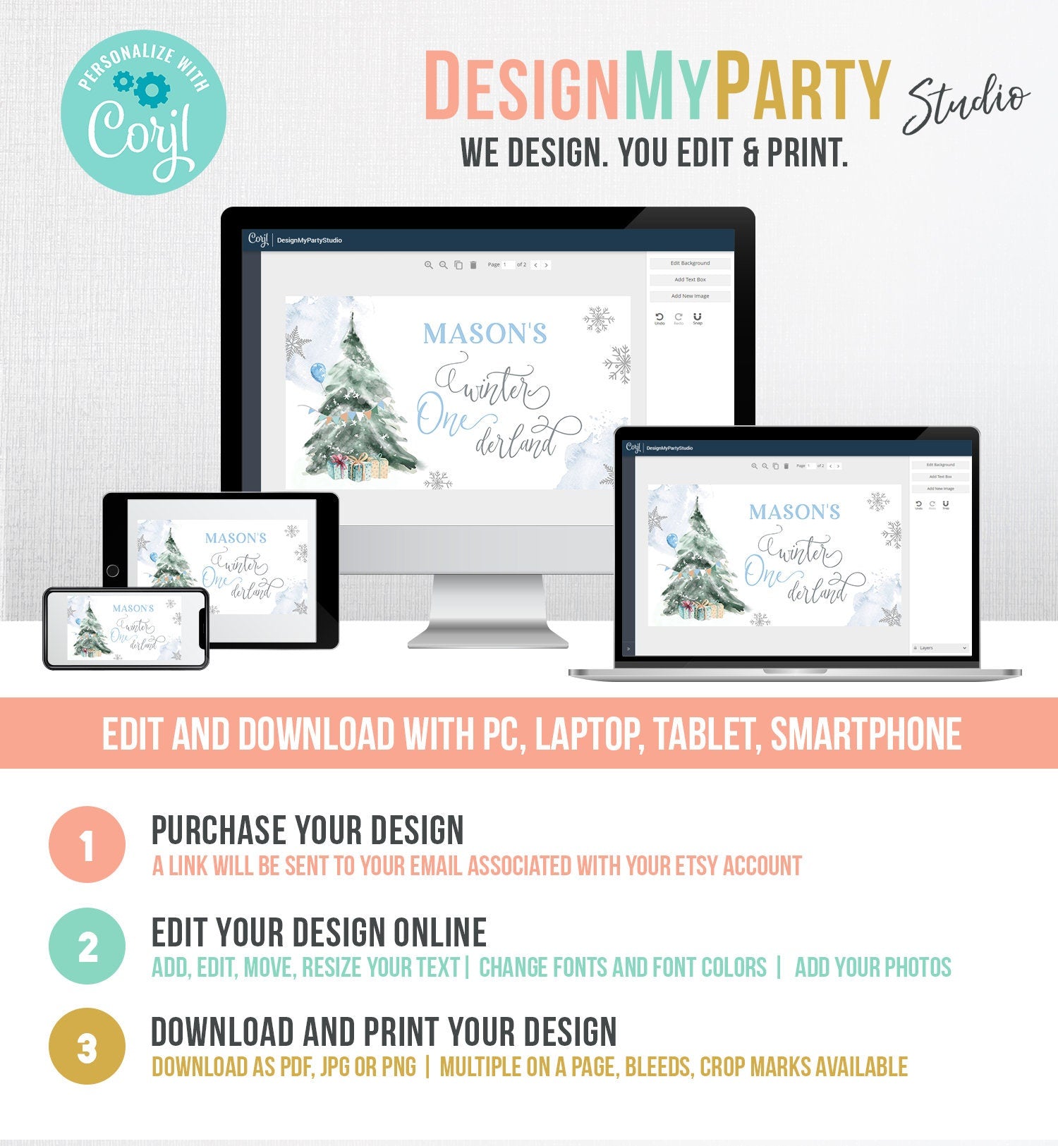 You will receive a link to edit your digital design, no printed items will be shipped!