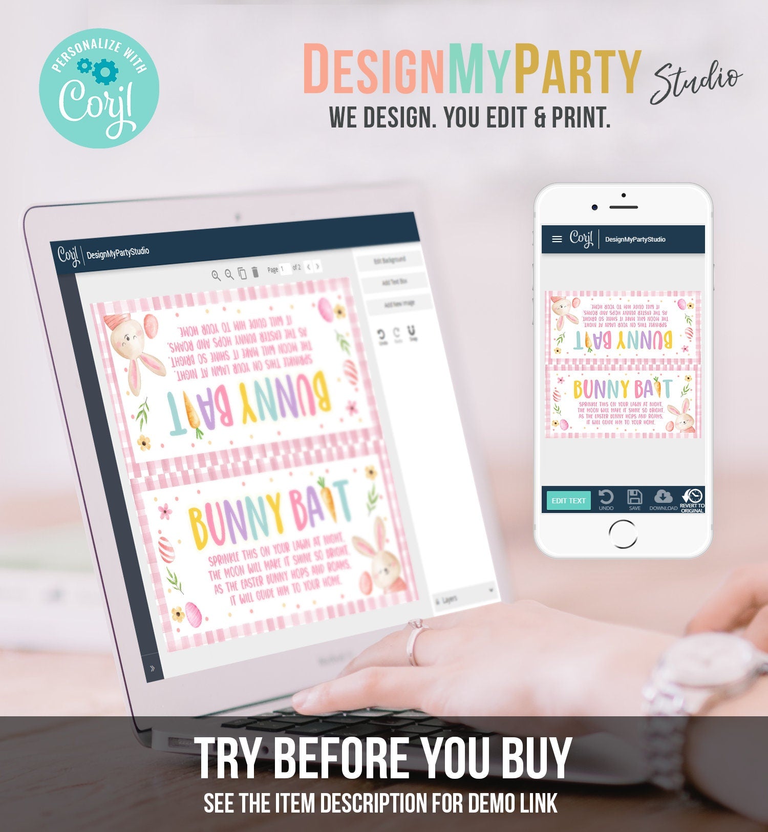 • Editable Easter Bunny Bait Treat Bag Toppers Easter Favor Bag Easter Treat Kids School Easter Basket Food Tag Corjl Template Printable 0449