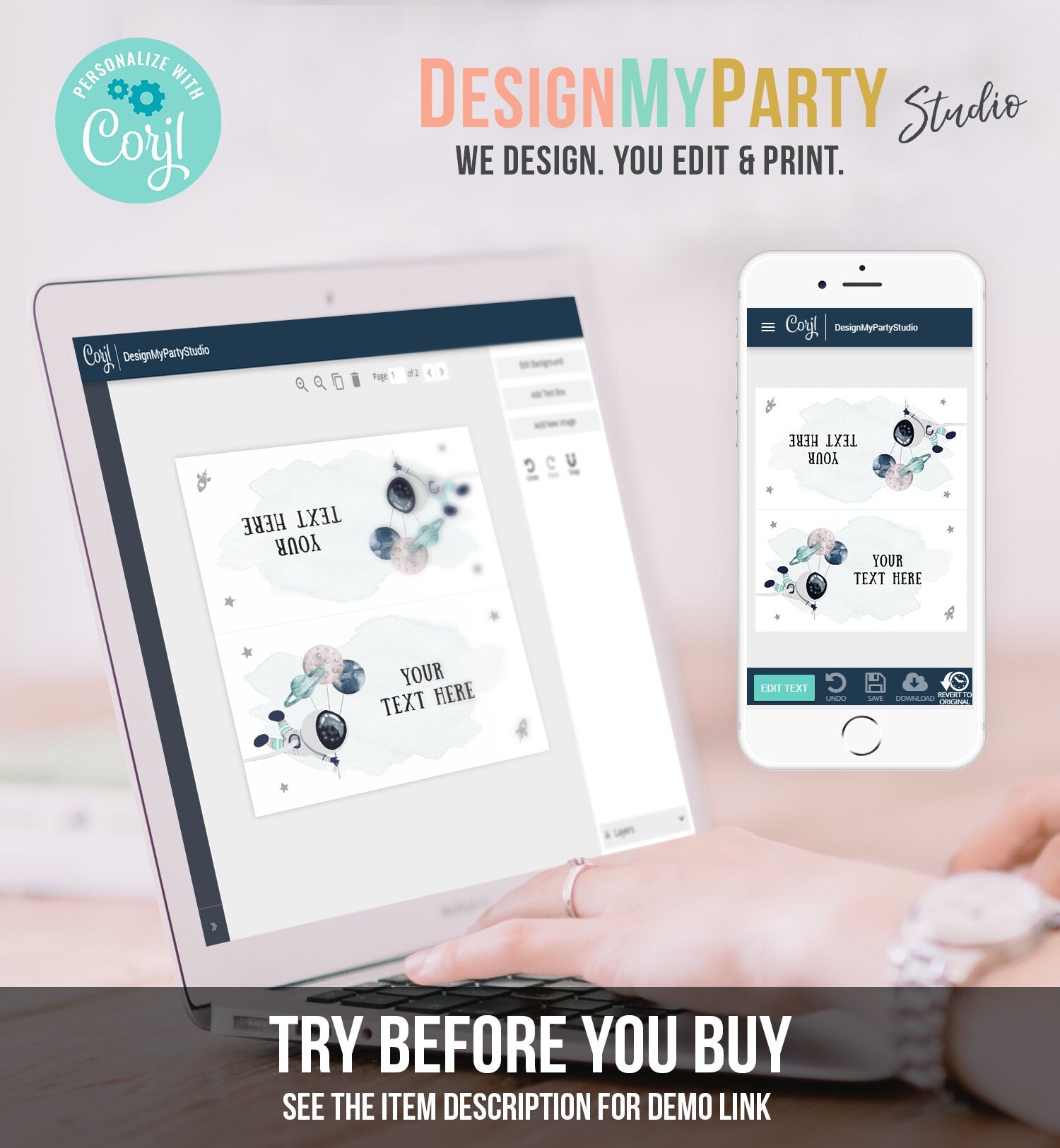 • Editable Food Labels Outer Space Astronaut Birthday Galaxy Food Labels Place Tent Escort Card Blue Silver Digital Template Printable 0366