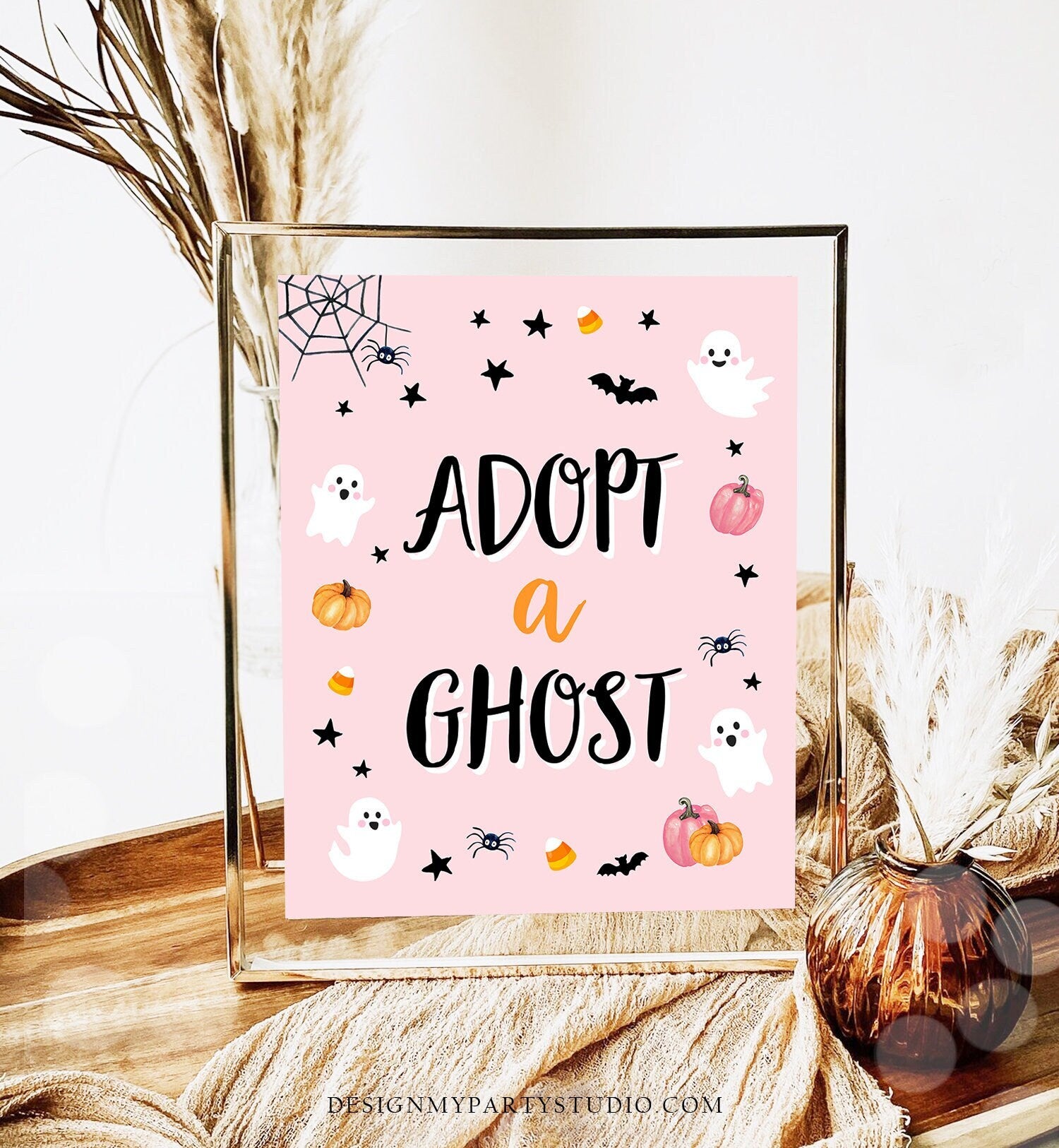 • Adopt a Ghost Sign Table Decor Halloween Ghost Party Sign Pink Ghost Spooktacular Birthday Adoption Favors Digital Download PRINTABLE 0418
