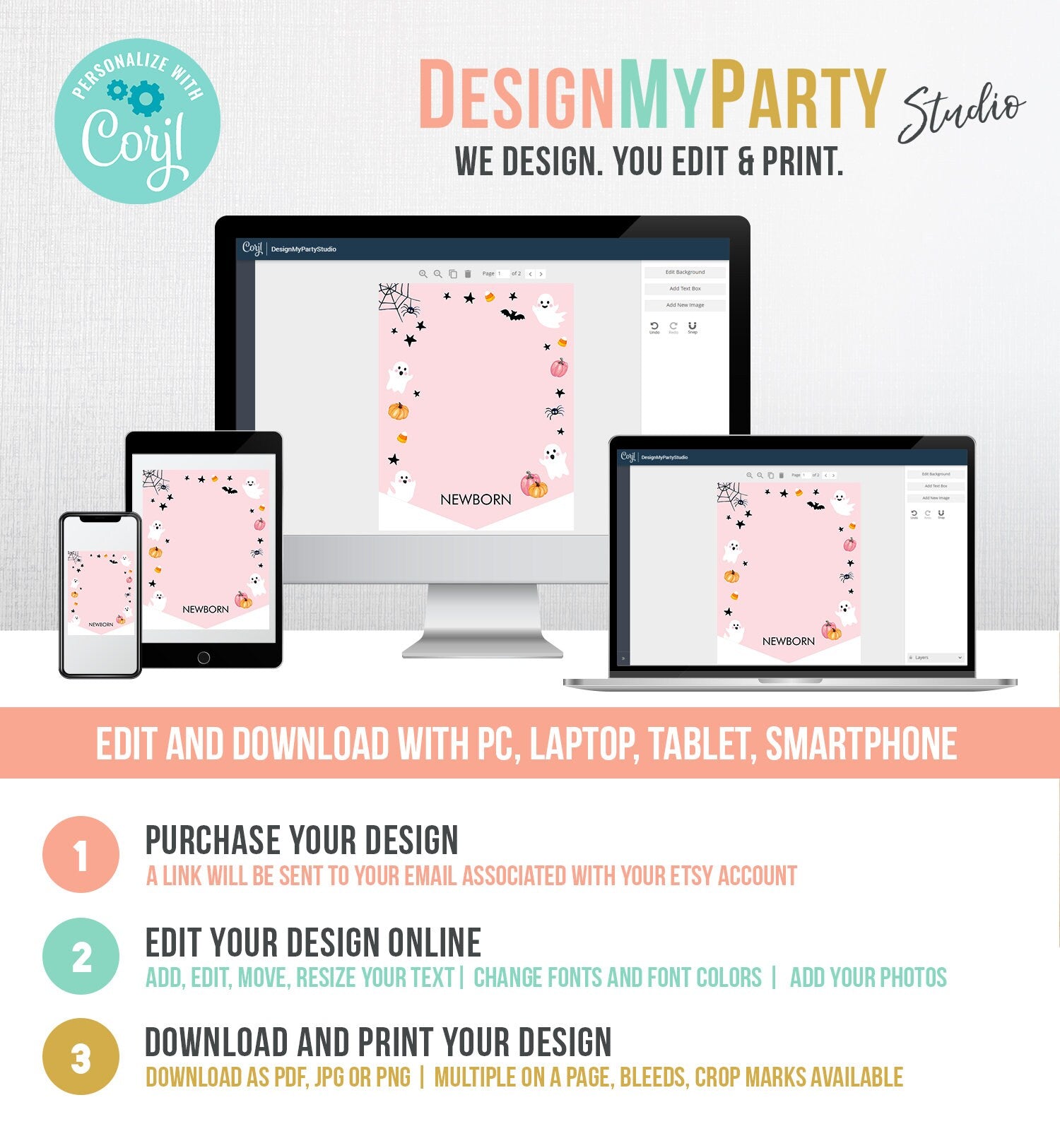 You will receive a link to edit your digital design, no printed items will be shipped!