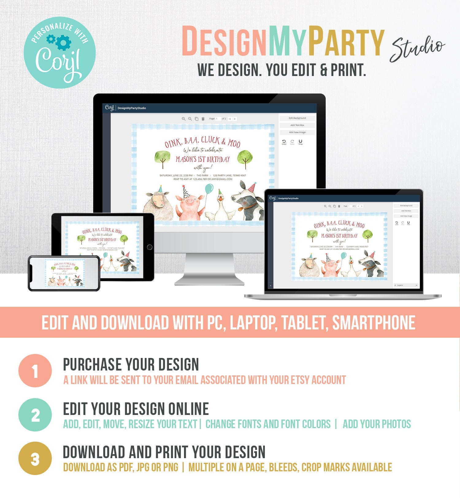 You will receive a link to edit your digital design, no printed items will be shipped!