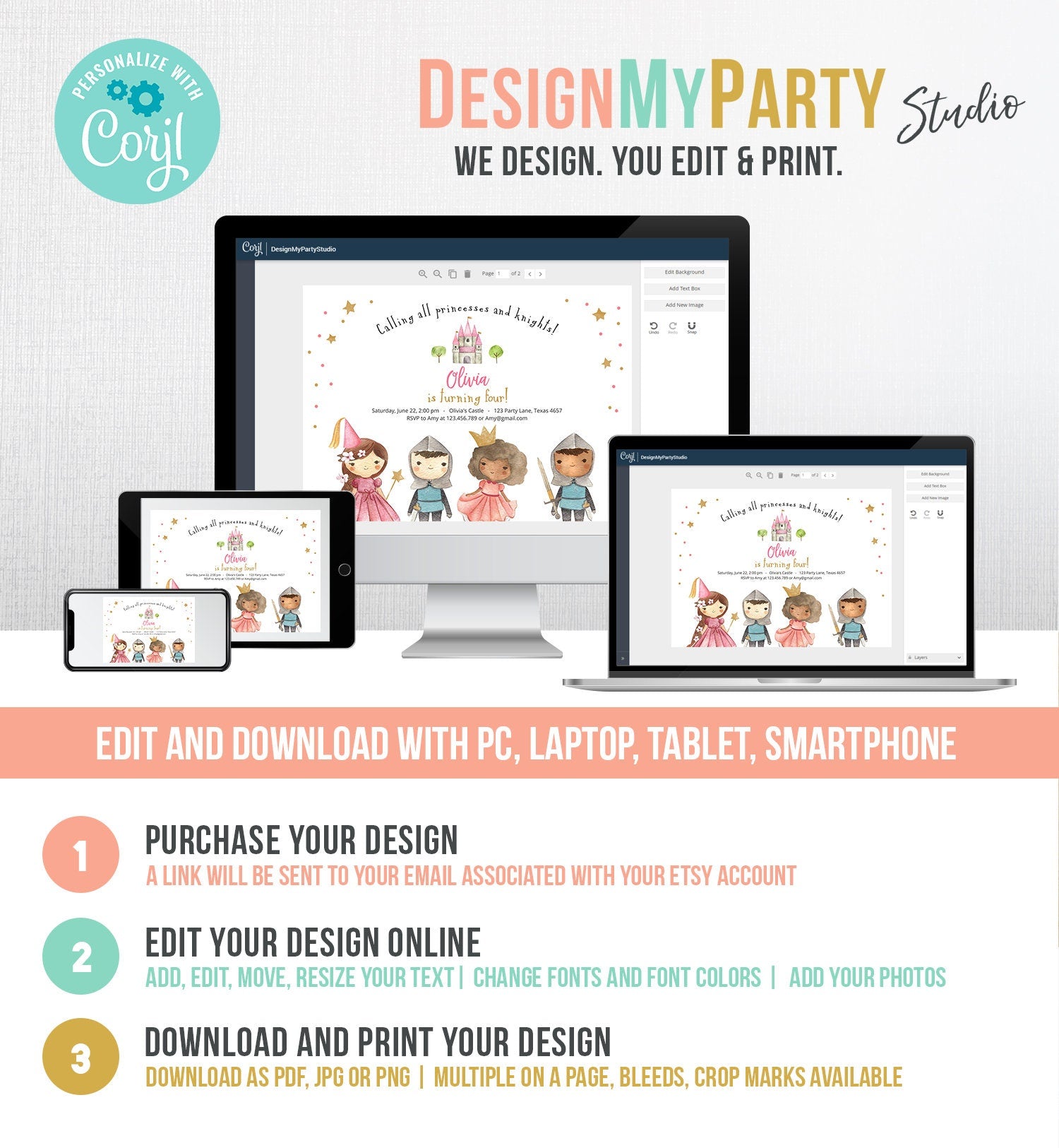 • Editable Princess and Knight Birthday invitation Once Upon a Time Princess Birthday Girl Pink Castle Download Printable Template Corjl 0171