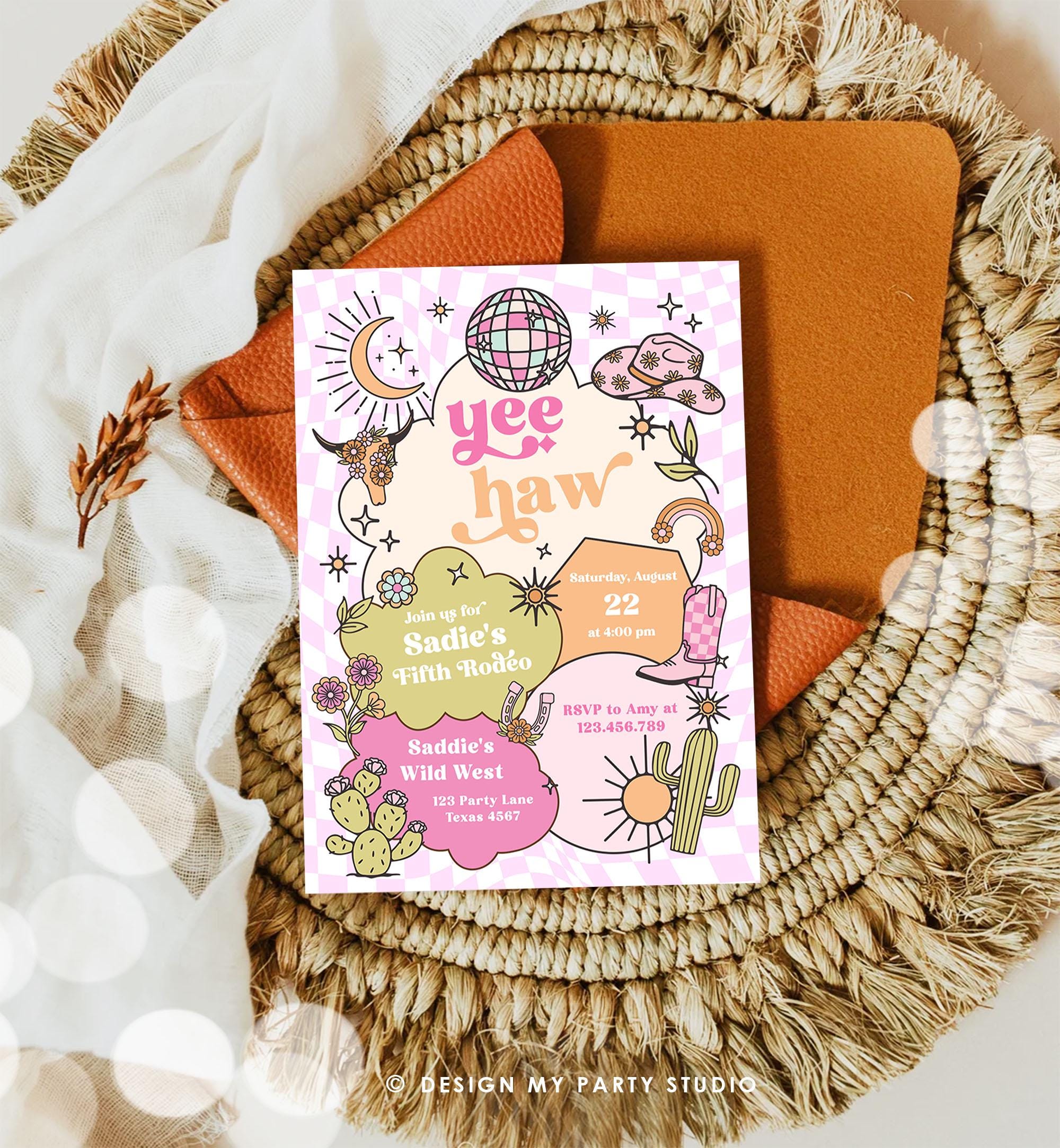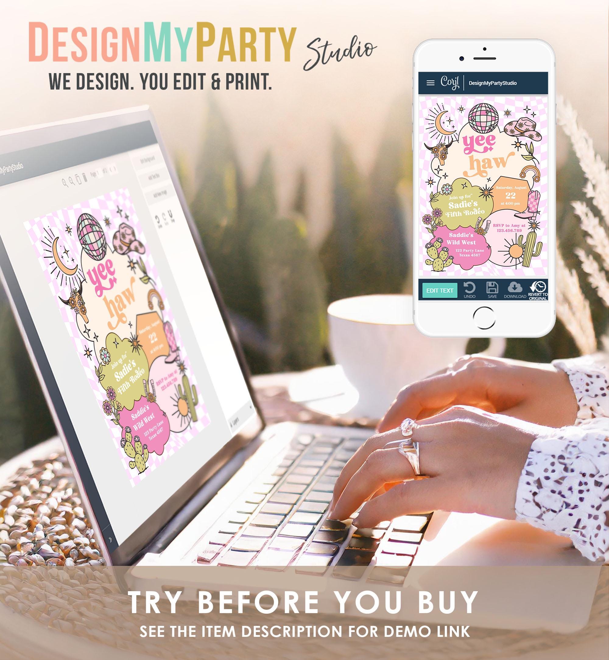 • Editable Space Cowgirl Birthday Party Invitation Disco Rodeo Pink Cowgirl Wild West Nashville Party Download Printable Template Evite 0519