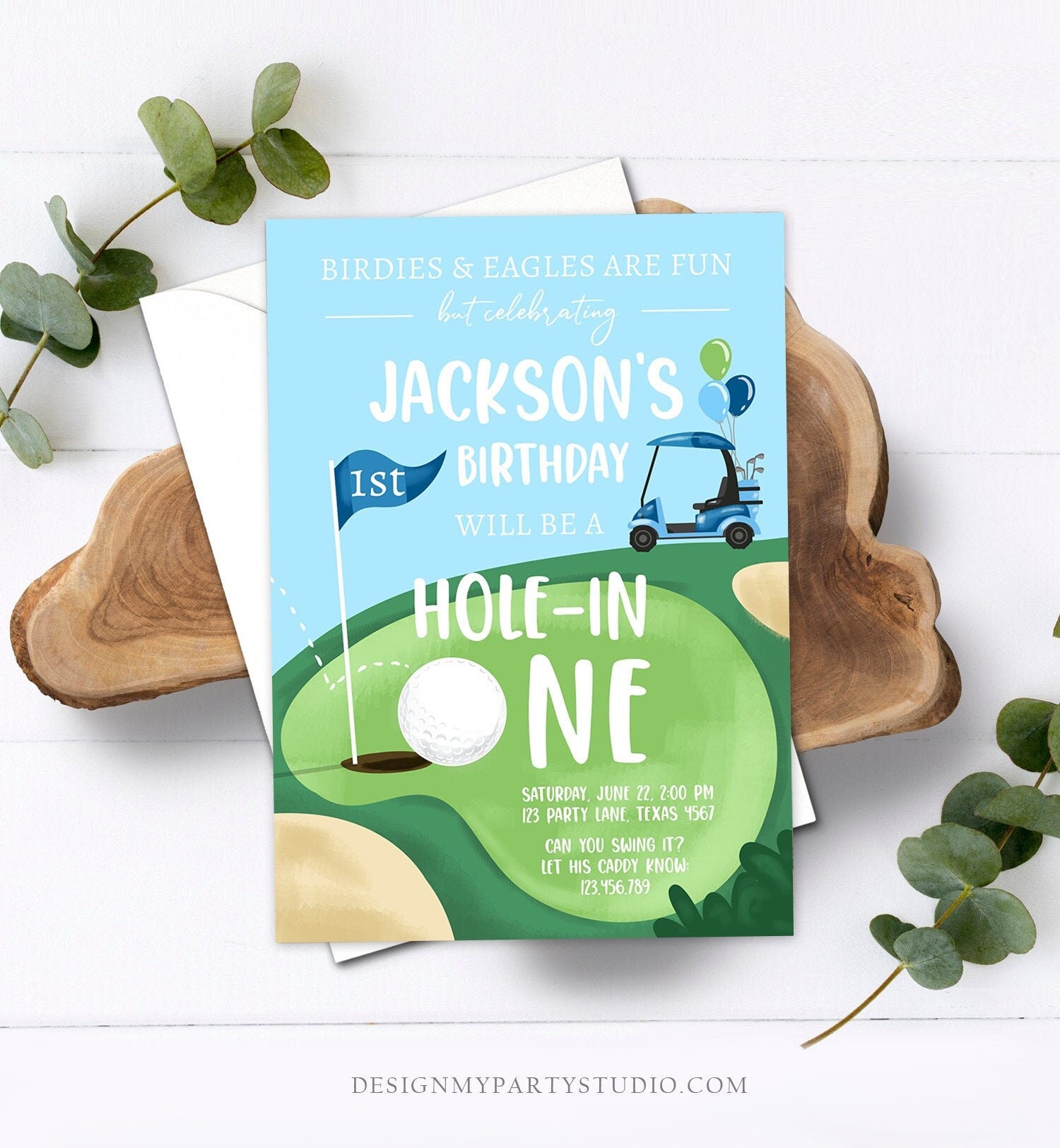• Editable Hole in One Birthday Invitation First Birthday Par-tee Golf Birthday Boy Golfing Digital Download Evite Template Printable 0405