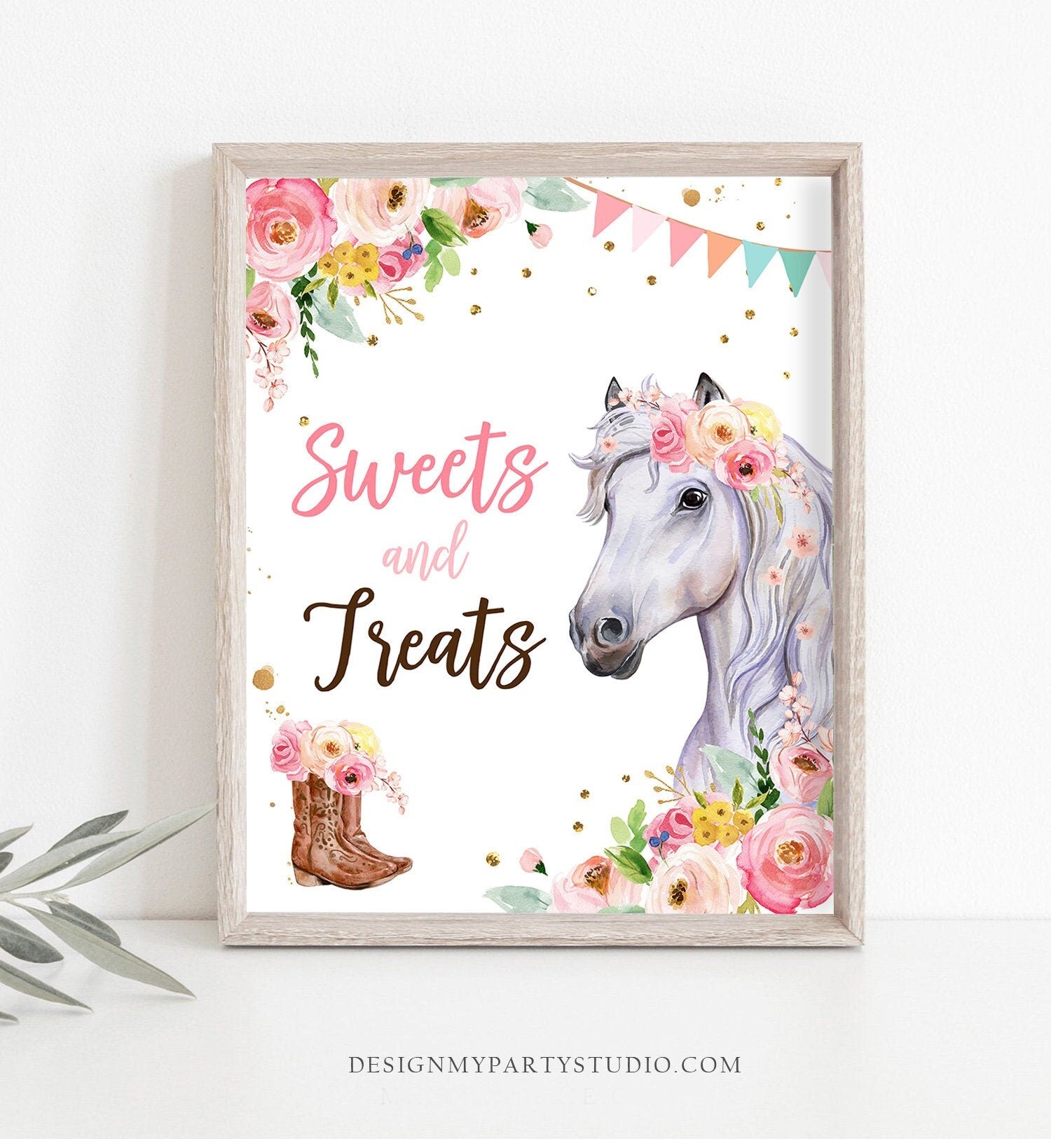 • Sweets and Treats Sign Horse Party Sign Table Decor Floral Horse Birthday Cowgirl Horse Favors Farm Horseback Riding Download Printable 0408