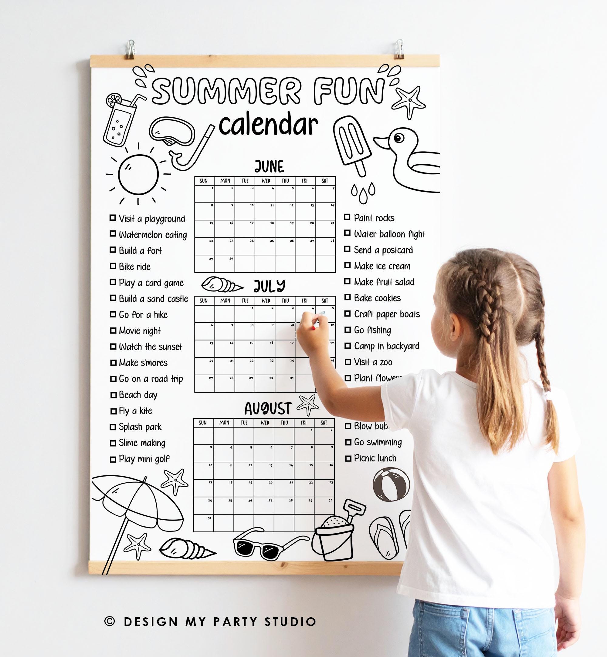 • Editable Summer Coloring Calendar Poster Bucket List Family Planner Checklist Summer Break Instant Digital Download Printable Template 0549