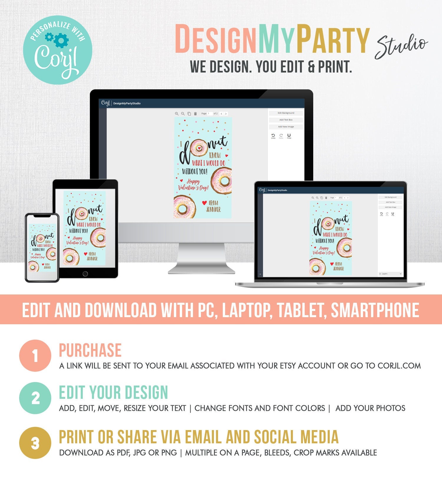 You can edit, add and remove text, font colors, move and resize the text boxes ("Donut" is NOT editable).