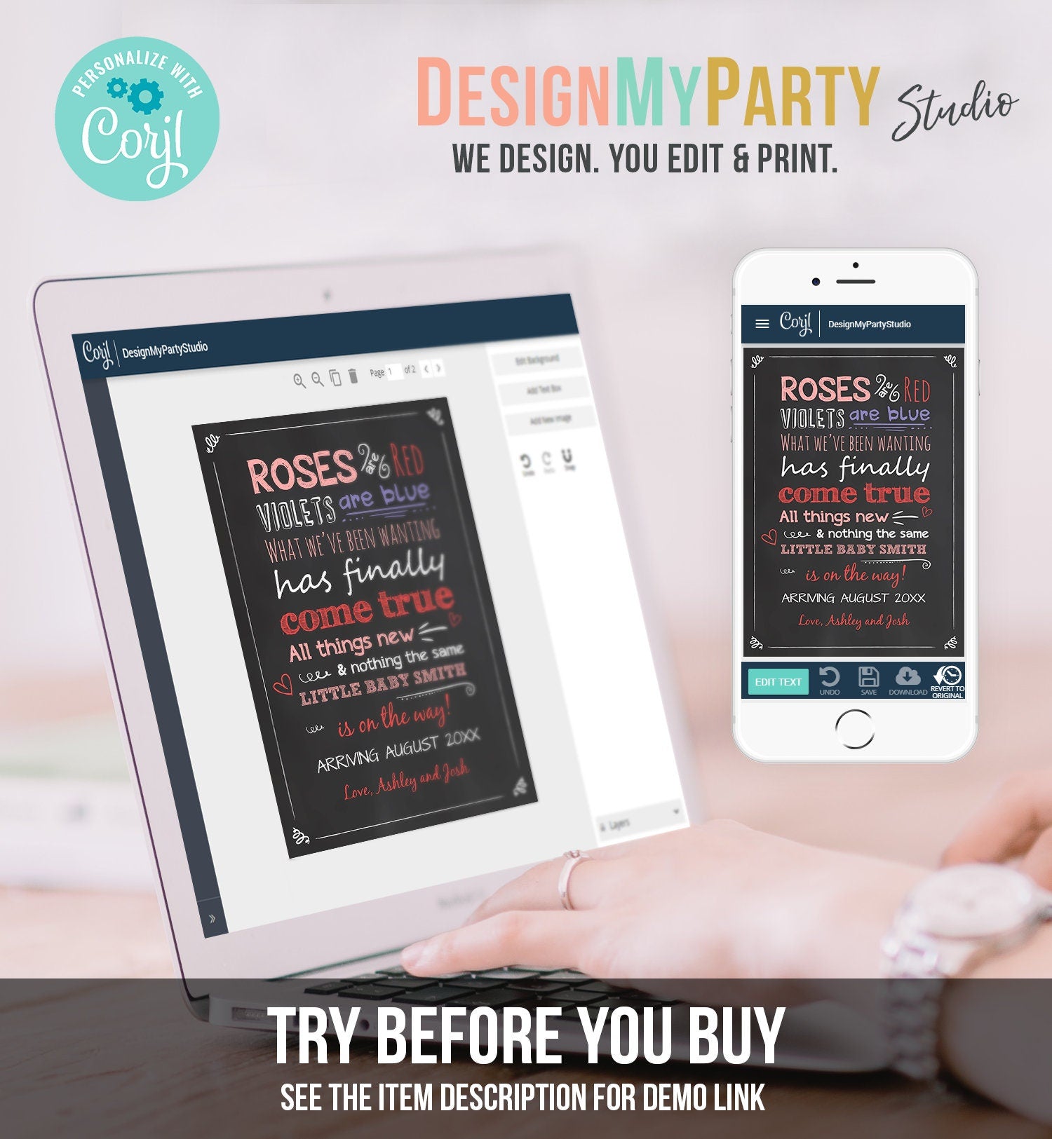 • Editable Valentine Pregnancy Announcement Grandparents Pregnancy Reveal Card Roses are Red Instant Download Printable Template Corjl 0296