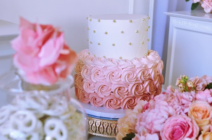 The colors we used for her bridal shower were blush pinks, whites and creams, a touch of gold & rose gold with a modern geometric twist. Desiree looked absolutely stunning in her white dress!