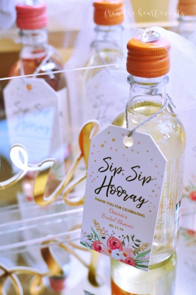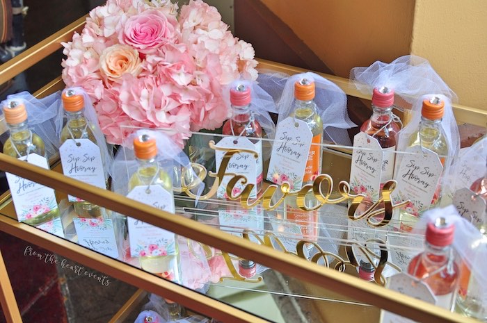 We love the soft peach, white and cream colors for this “Miss to Mrs” Bridal Shower Brunch by Kimberly Shen of From the Heart Events. Also, we enjoy looking at the photos even more because Kimberly chose to use our Sip Sip Hooray tags for the favors 🙂