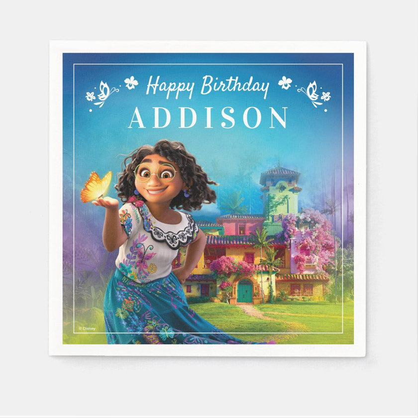 Who doesn't love a Disney themed birthday party? This time the party was all about Encanto and especially the girl Mirabel. The cardboard standee was a great succes and the kids loved it. For the snacks little marshmallows were put on a stick with an Mirabel image on top and birthday activities included coloring pages, decorating Encanto Houses and of course listening to Encanto's songs!