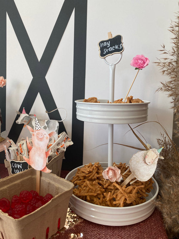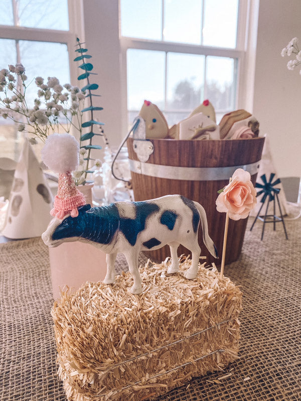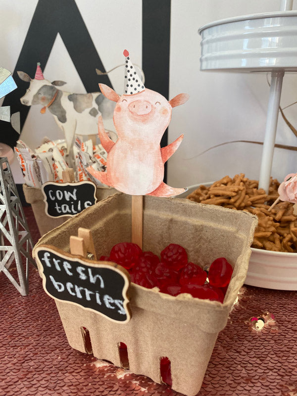 What kid doesn't love the farm animals birthday theme? Lots of pink gingham and sweet party decorations are added for this little girls birthday party.