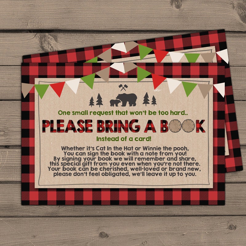 • Baby Shower Bring a Book Card Lumberjack Buffalo Plaid Baby Baby shower Lumberjack Baby shower Book Insert Book card Red PRINTABLE 0026