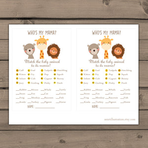 ★A fun game for your next baby shower! Match up the baby animals to their mothers! ★