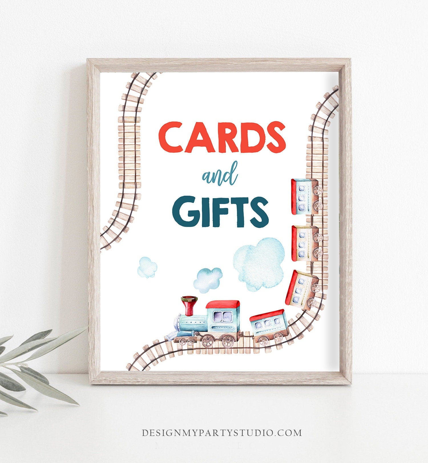 • Cards and Gifts Sign Train Birthday Party Vintage Train Theme Boy Birthday Red Blue Gift Table Sign Drop Off Sign Decor Printable 0149