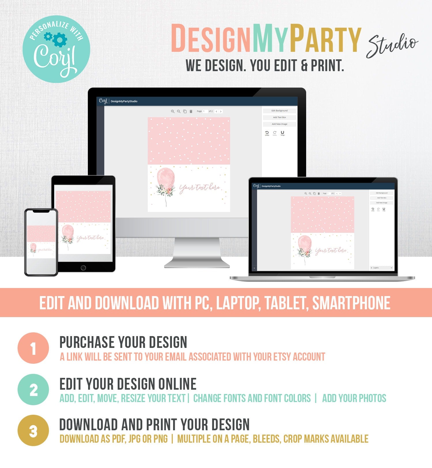 You will receive a link to edit your digital design, no printed items will be shipped!