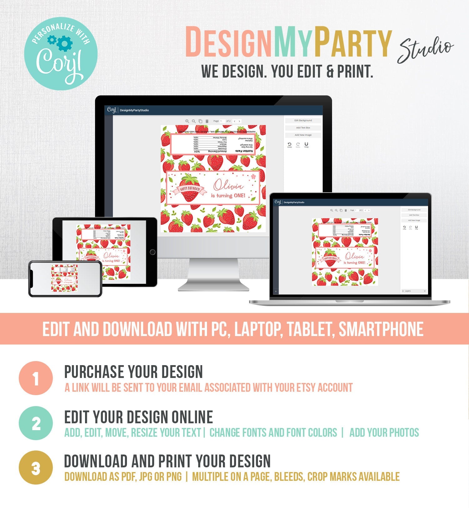 You will receive a link to edit your digital design, no printed items will be shipped!