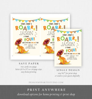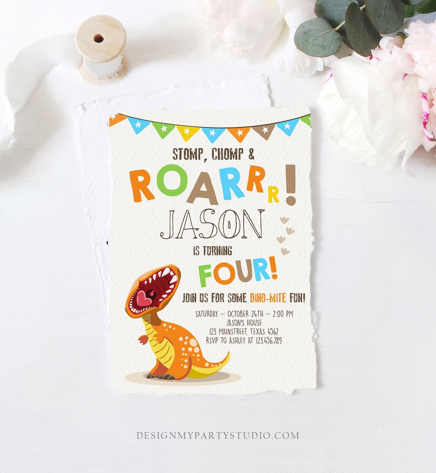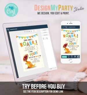 You can edit, add and remove text, font colors, move and resize the text boxes ("STOMP, CHOMP & ROARRR!" is NOT editable).