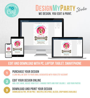 You can edit, add and remove text, font colors, move and resize the text boxes ("It's Time to Paw-ty!" is NOT editable).