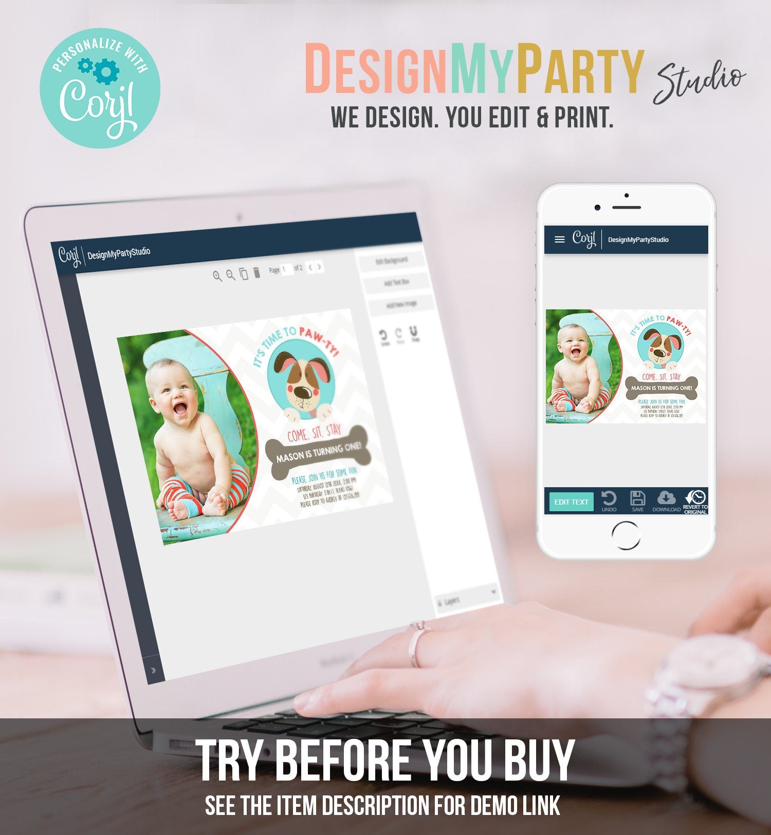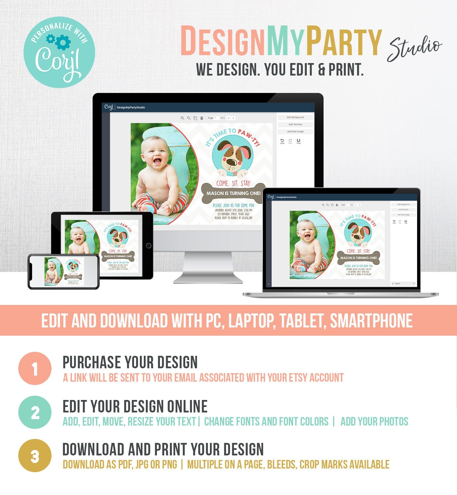 You can edit, add and remove text, font colors, move and resize the text boxes ("It's Time to Paw-ty!" is NOT editable).
