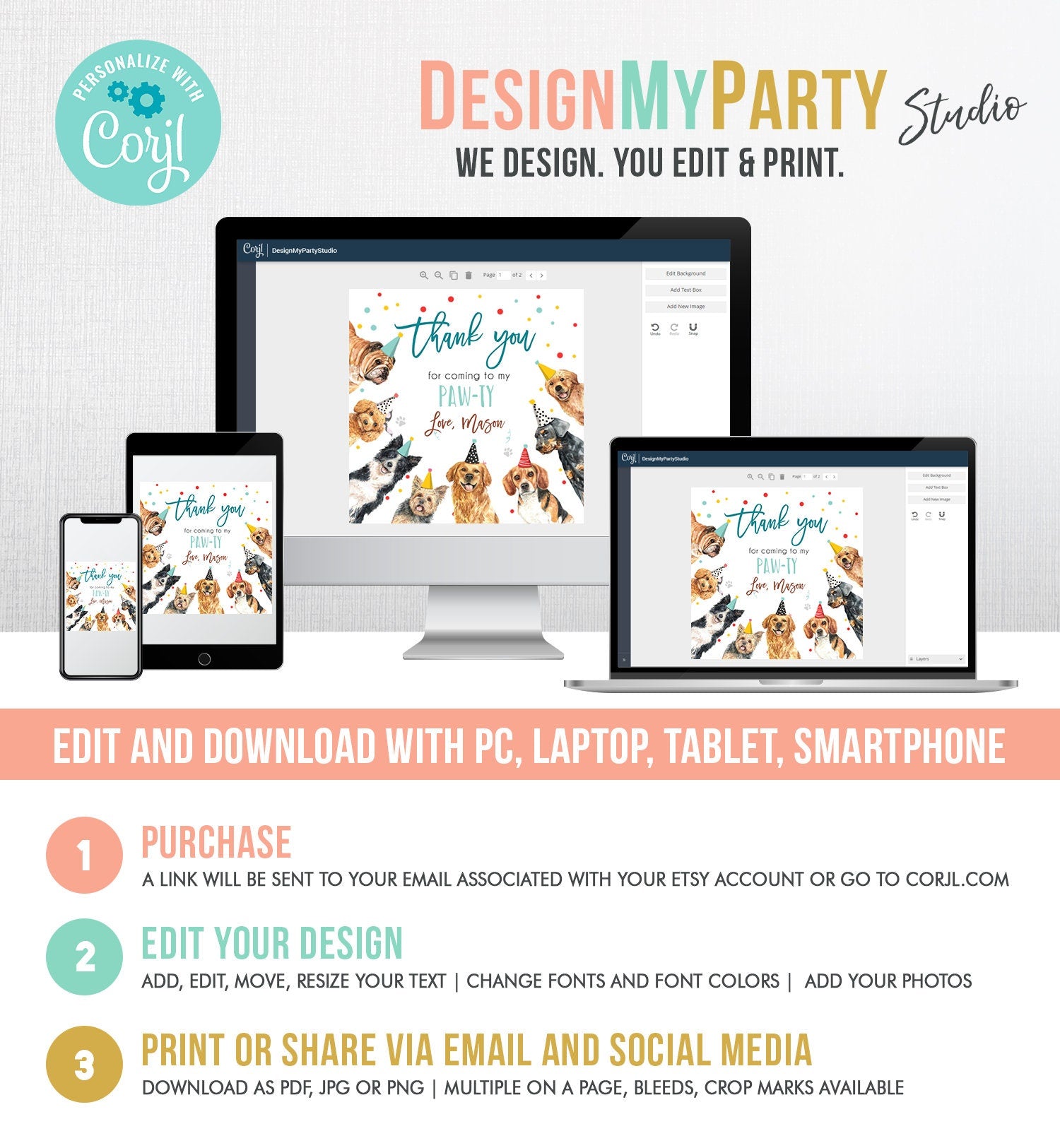 You will receive a link to edit your digital design, no printed items will be shipped!