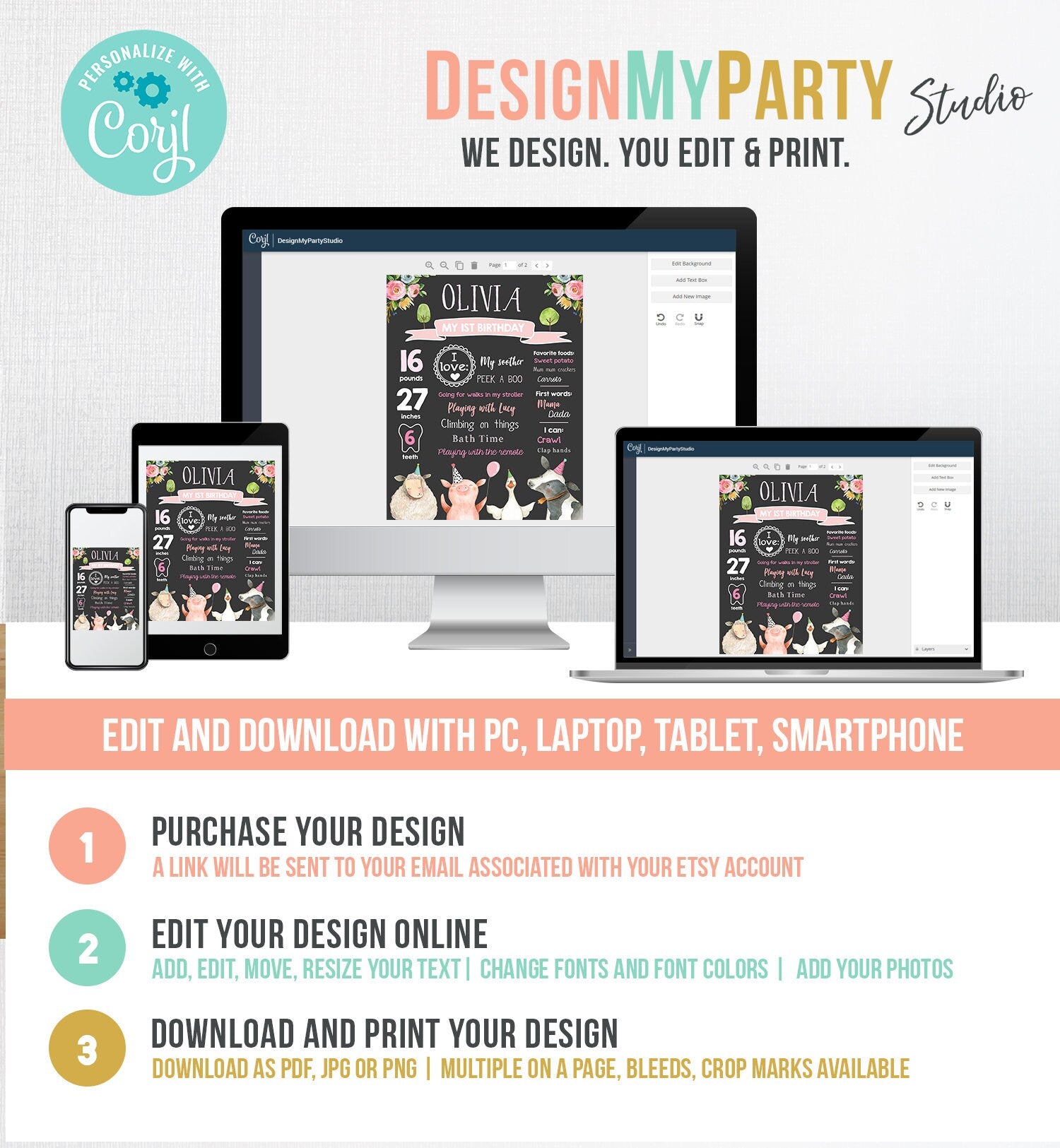 ★ A wonderful addition to your party decor. Save money by editing and printing the files yourself! ★