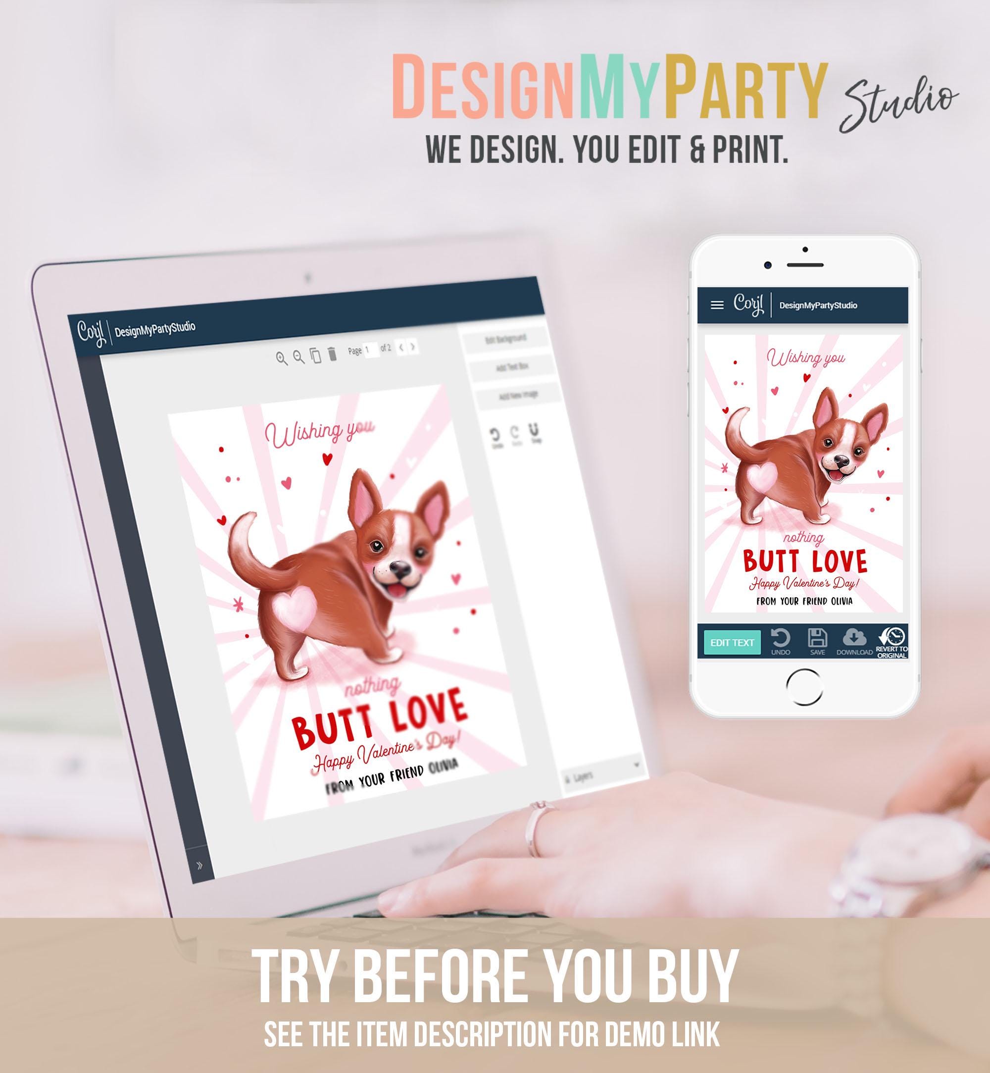 You can edit, add and remove text, font colors, move and resize the text boxes ("Butt Love" is NOT editable but can be removed).