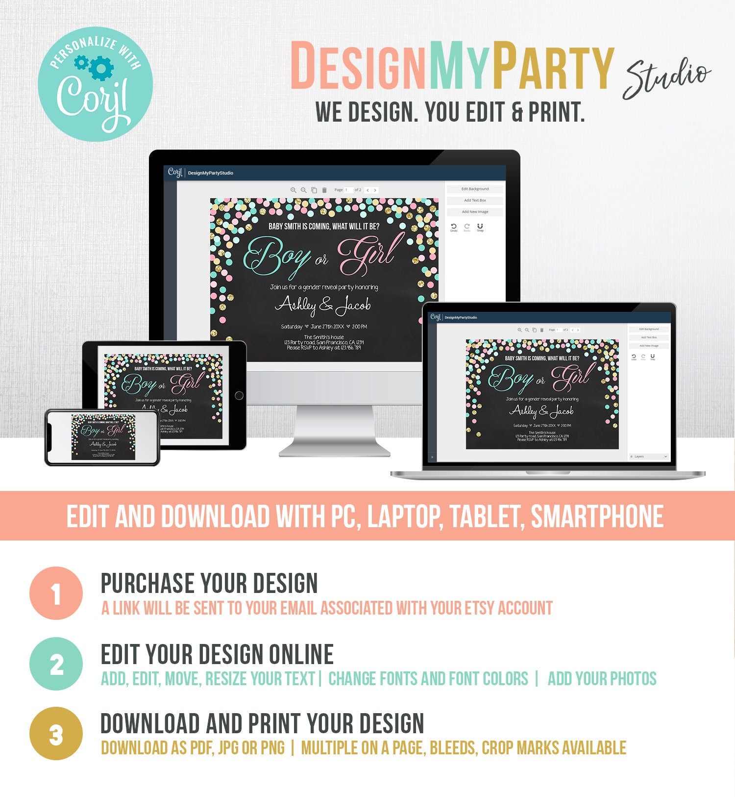 You will receive a link to edit your digital invitation, no printed items will be shipped!