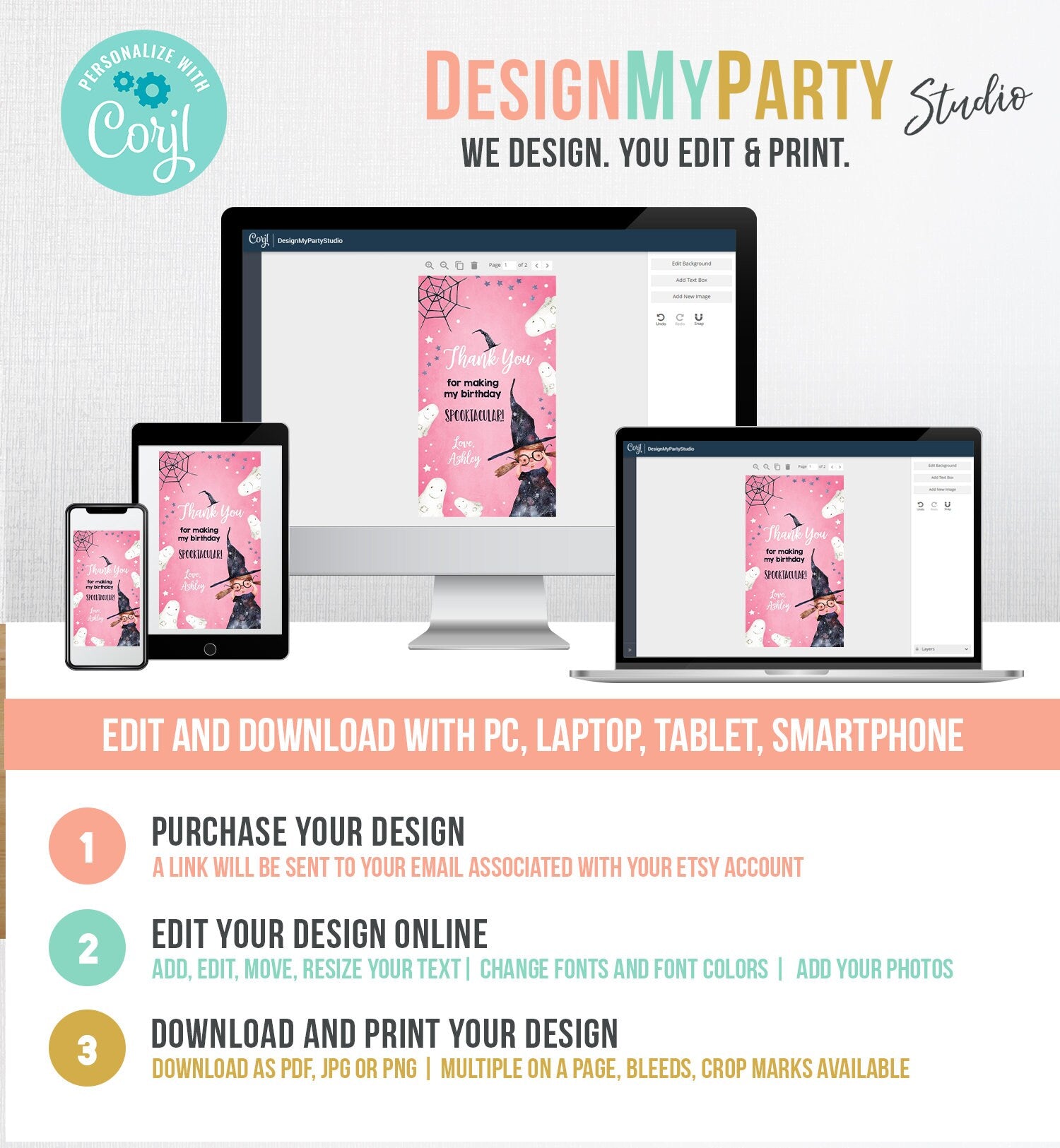 You will receive a link to edit your digital design, no printed items will be shipped!