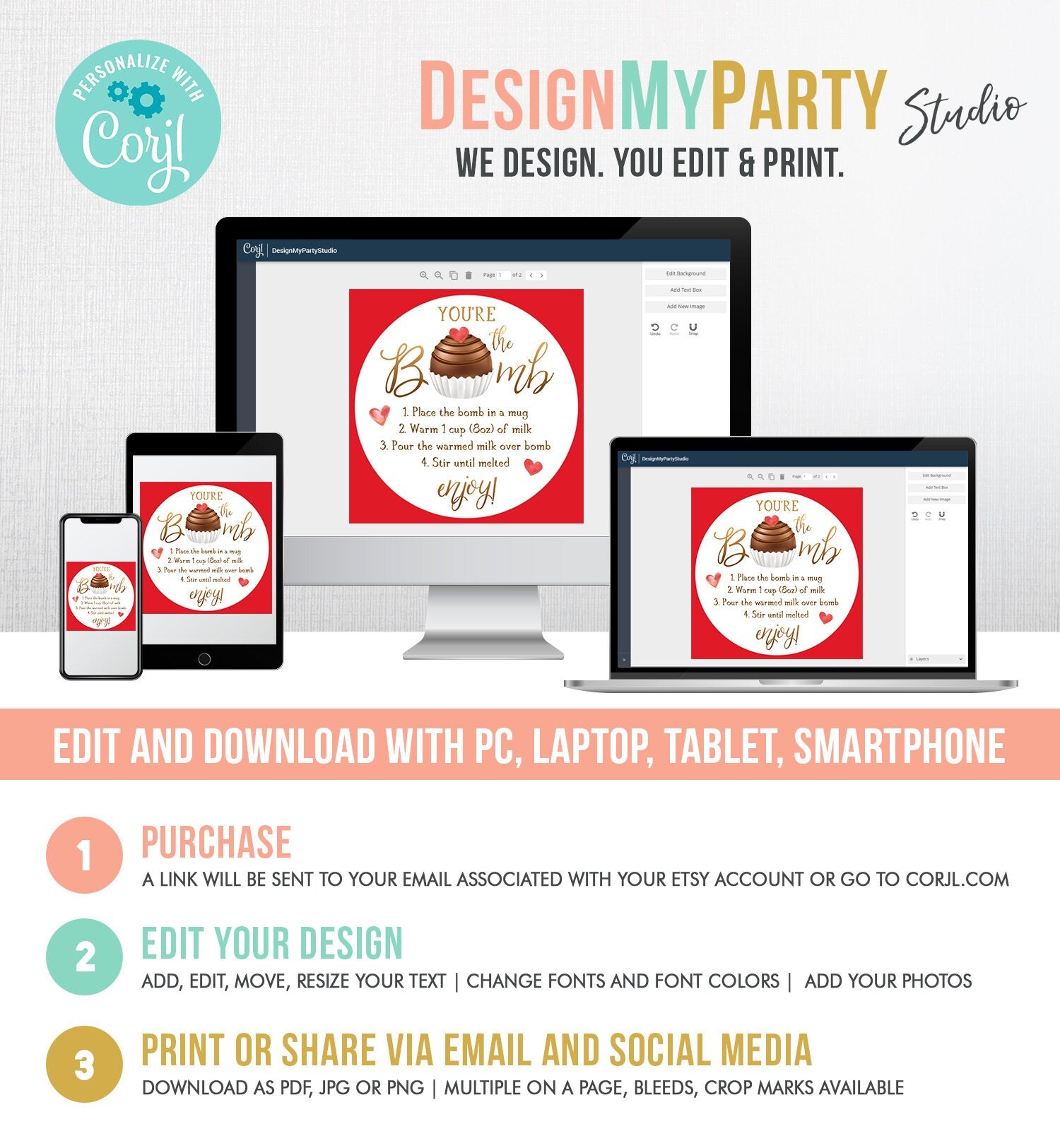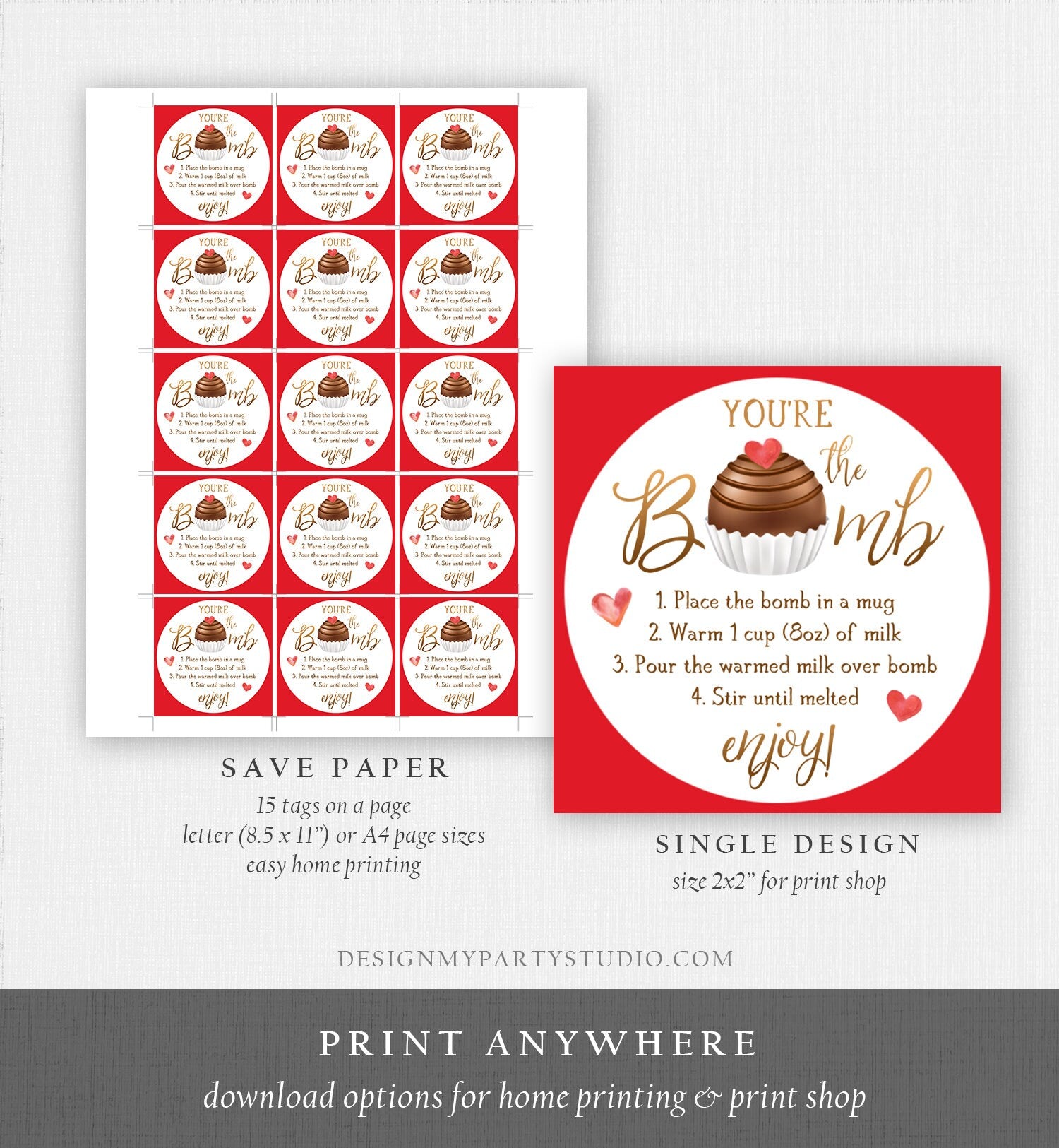 ★ Such a cute addition to your Hot Chocolate Bomb and to save money by editing and printing the files yourself! ★