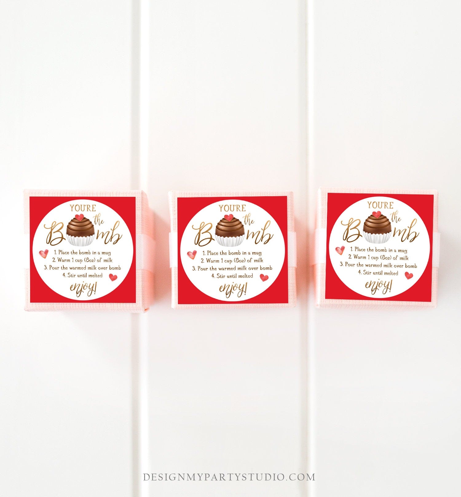 • Editable Hot Chocolate Bomb Tag Valentine's Day Hot Cocoa Bomb You're The Bomb Heart Pink Valentine Gift Tag Digital Download Printable 0370