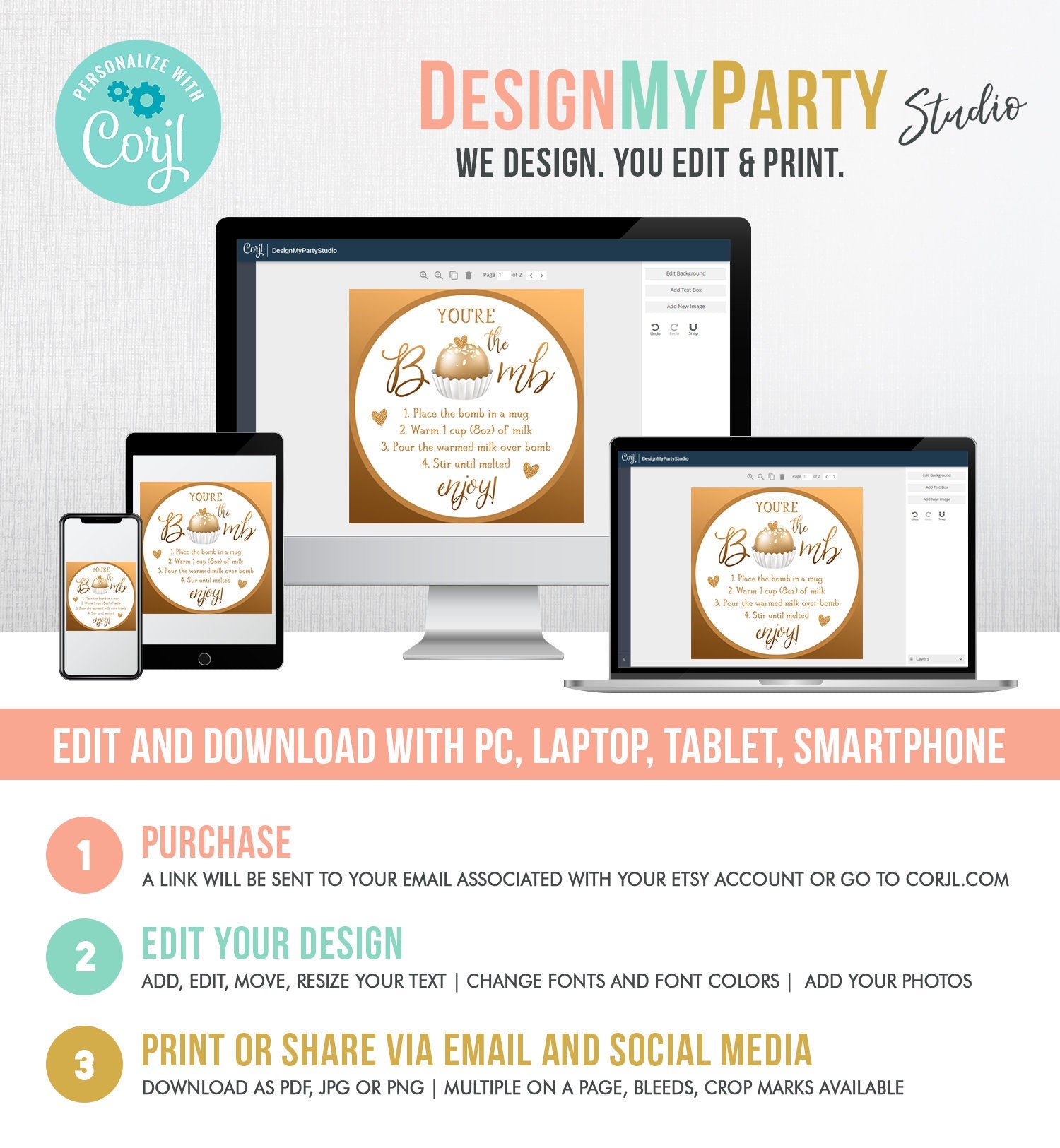 ★ Such a cute addition to your Hot Chocolate Bomb and to save money by editing and printing the files yourself! ★