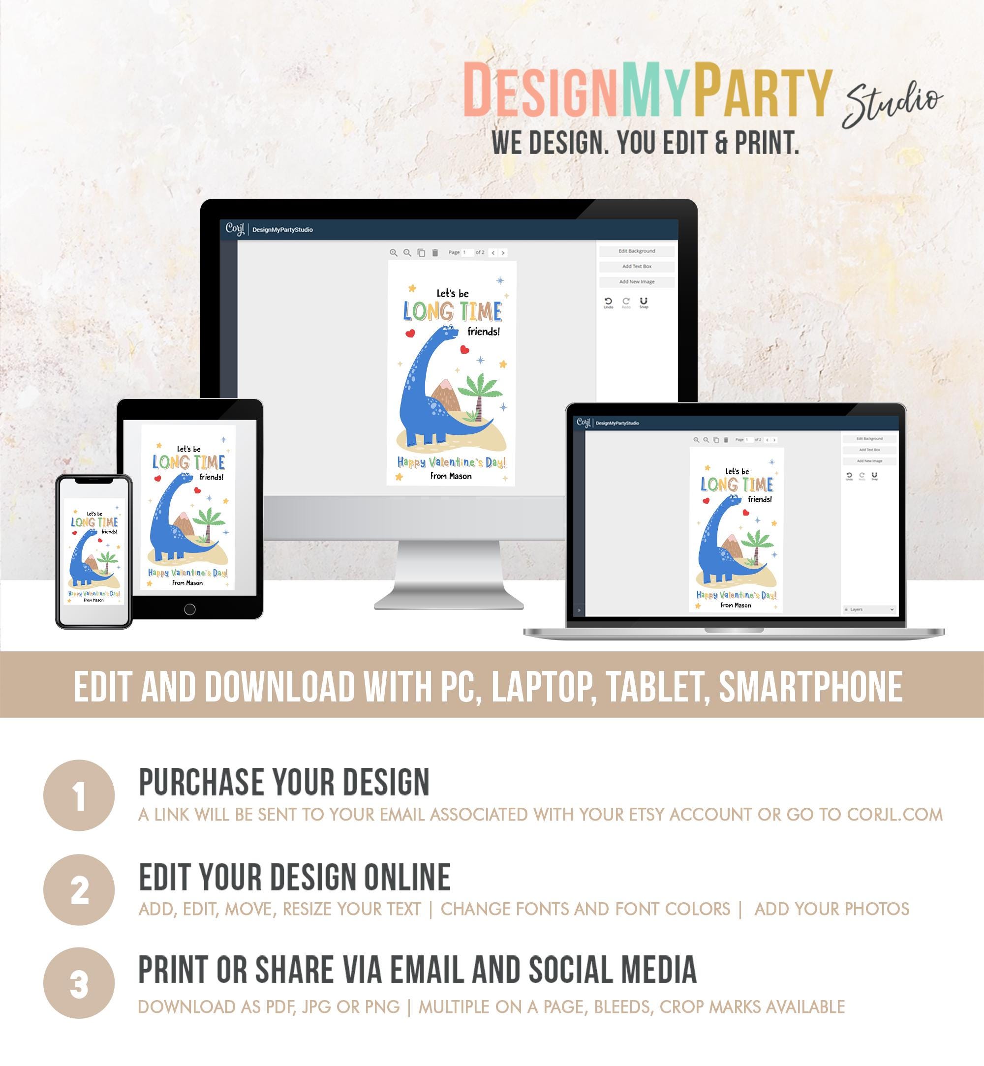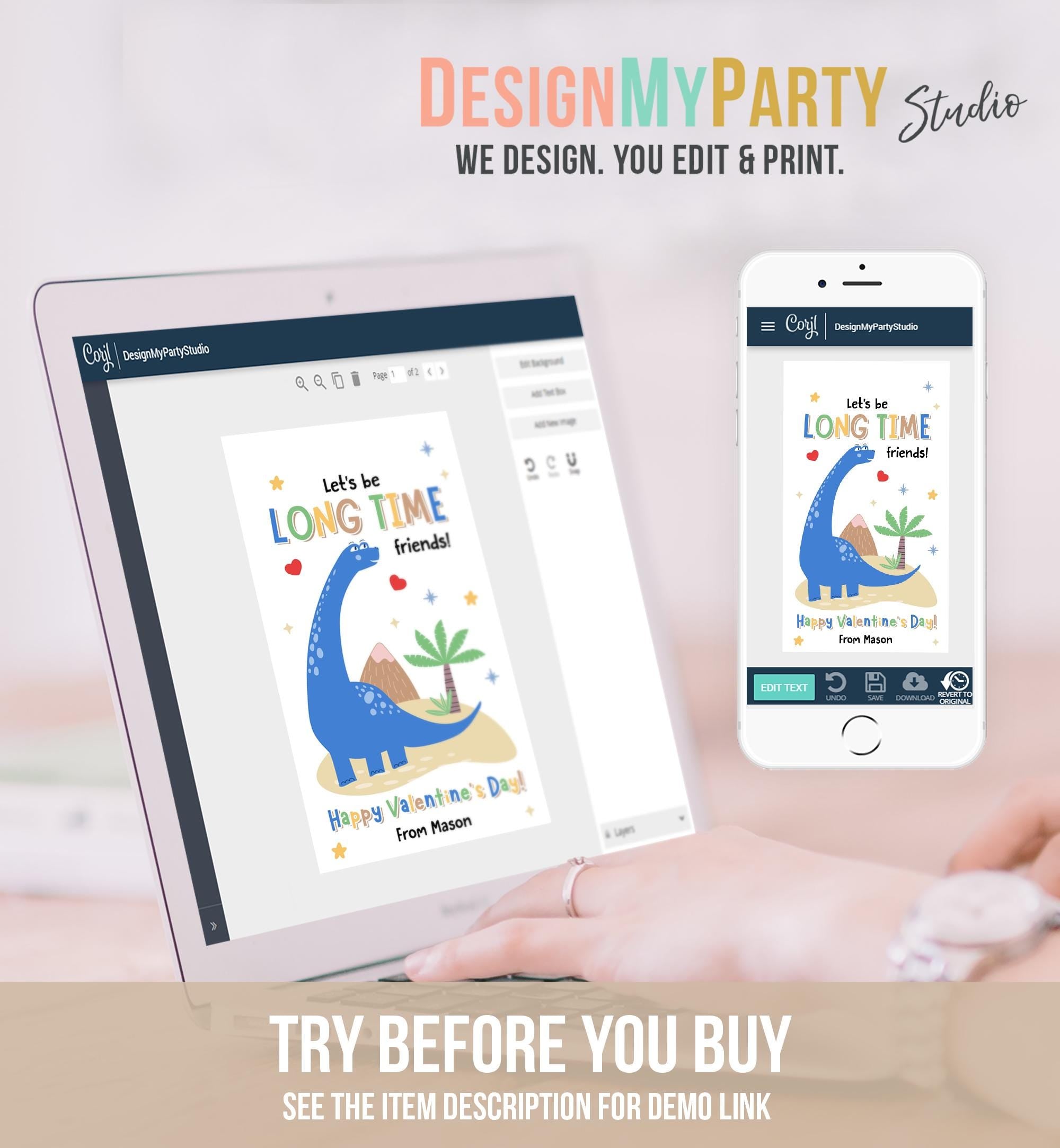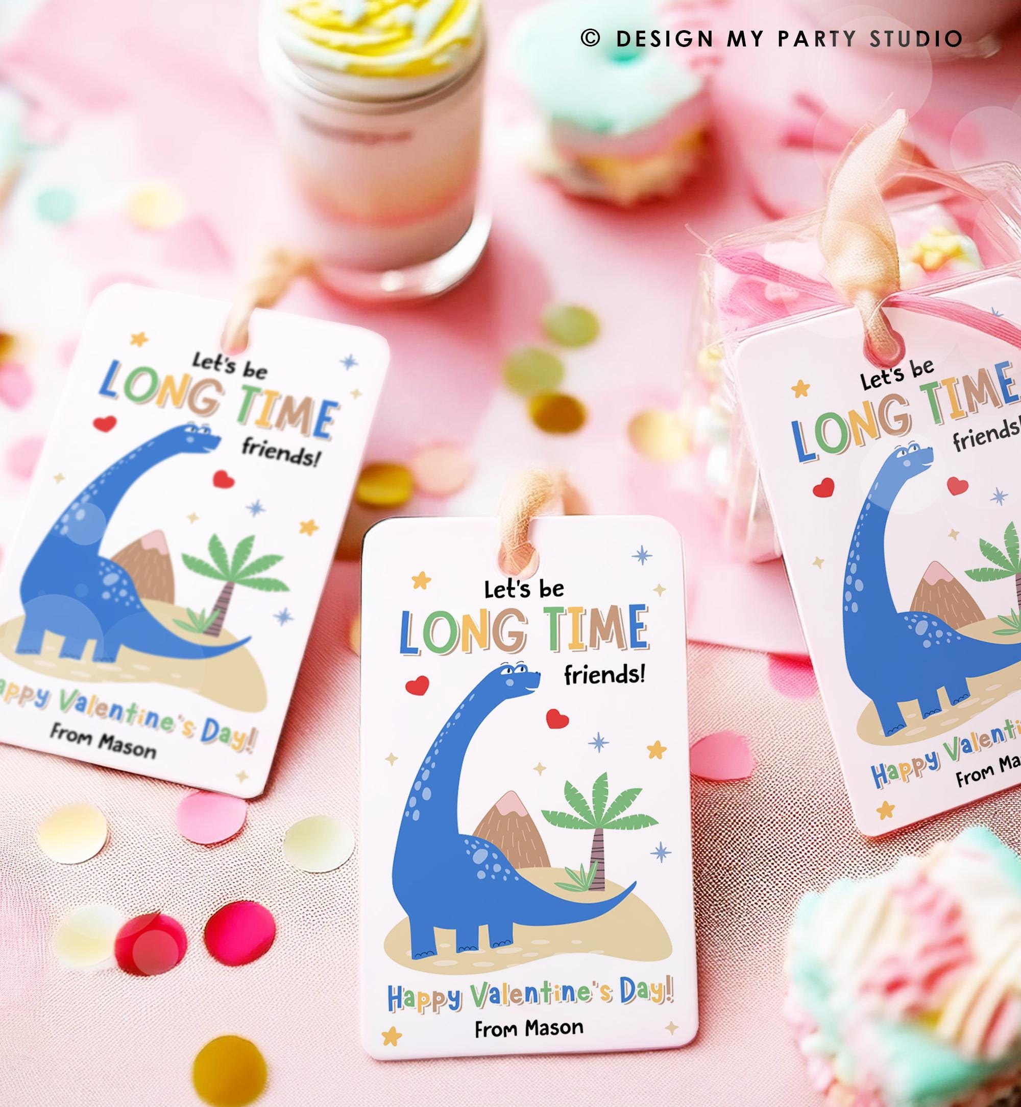 • Editable Let's be Long Time Friends Valentines Day Gift Tag Dinosaur Dino Brachiosaurus Card Kids School Classroom Template Printable 0370