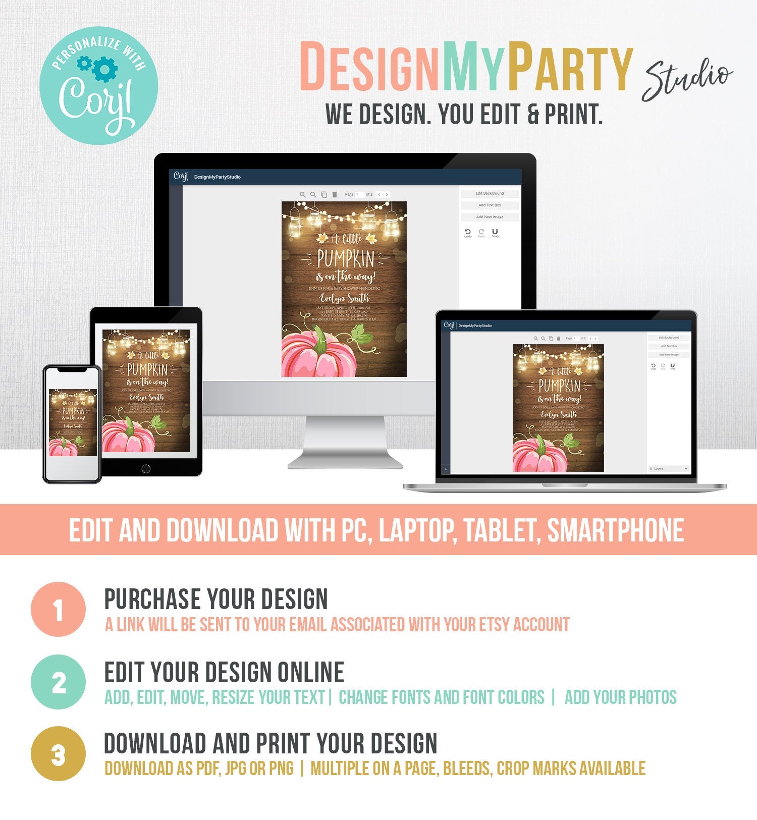 You will receive a link to edit your digital design, no printed items will be shipped!
