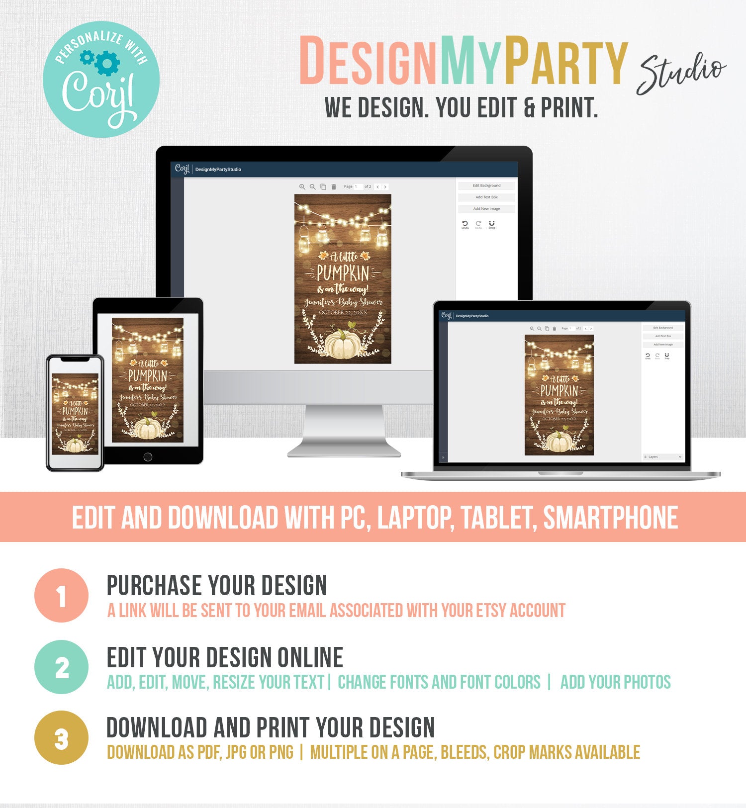You will receive a link to edit your digital design, no printed items will be shipped!