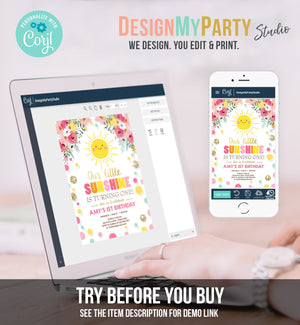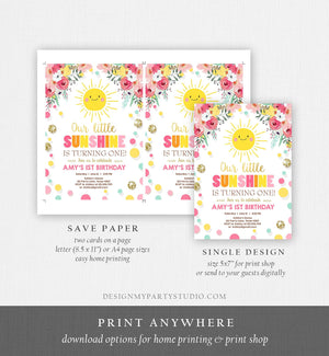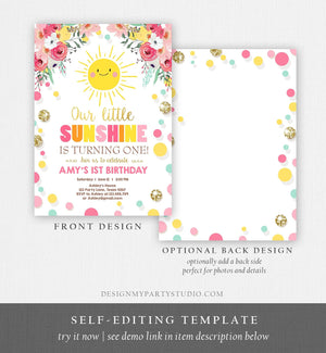 • Editable Little Sunshine Birthday Invitation You are My Sunshine Lemonade Girl First Birthday Pink Gold 1st Corjl Template Printable 0244