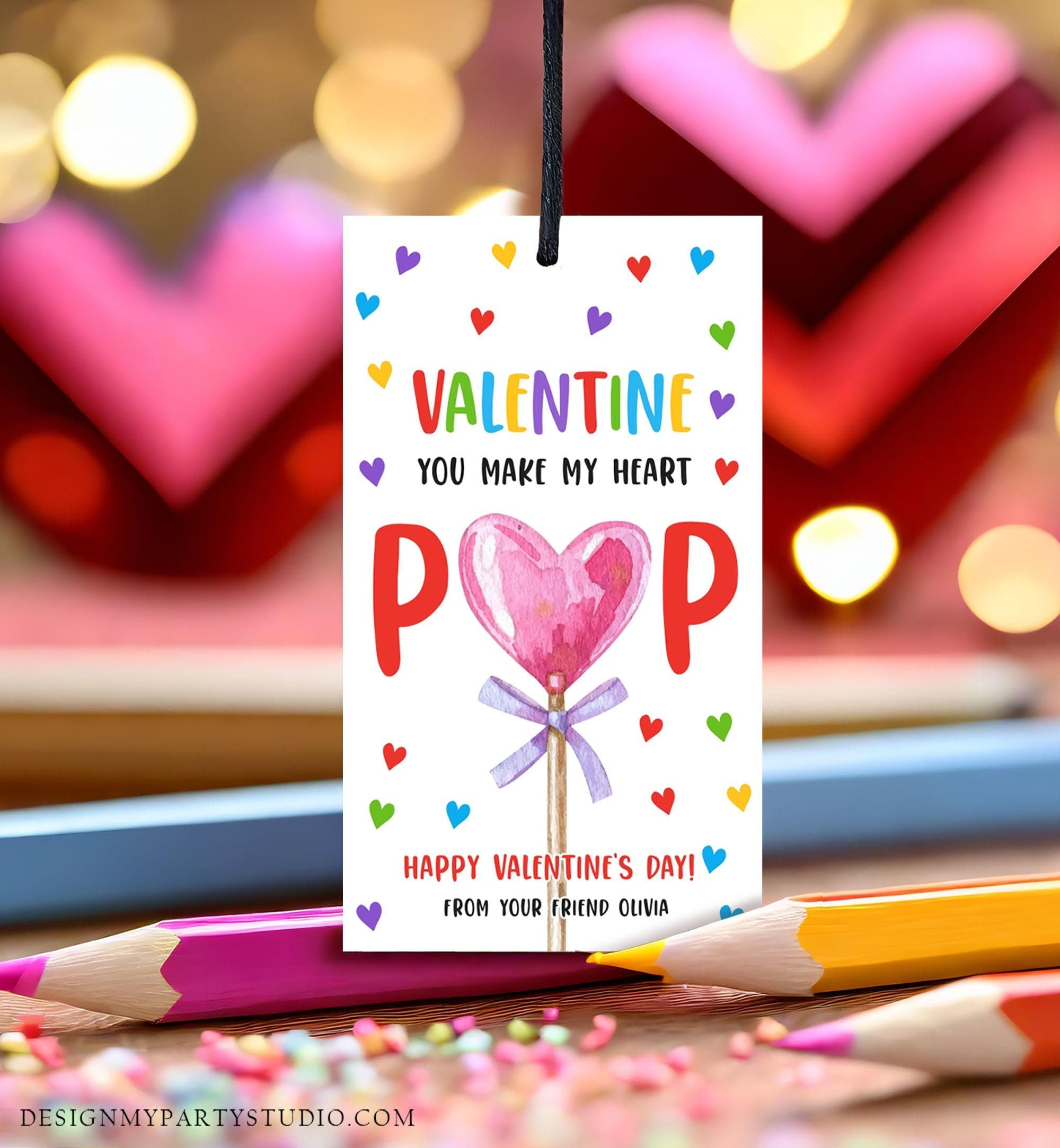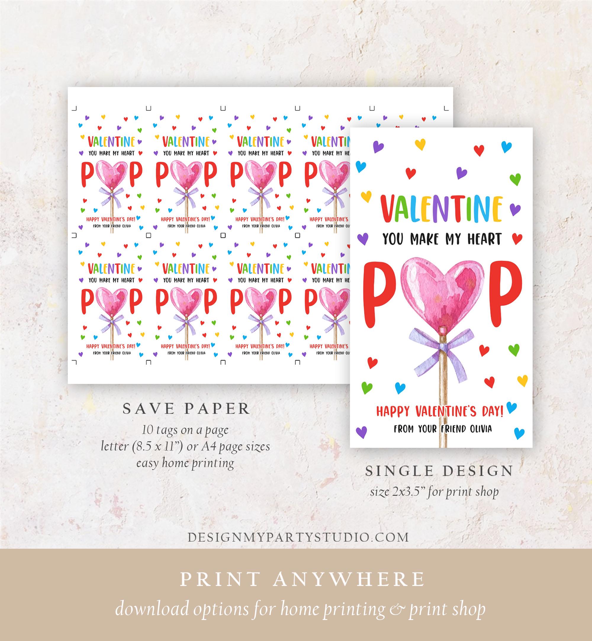 • Editable Lollipop Valentines Tag Valentine's Day Gift Tag You Make My Heart Pop Sucker Kids School Classroom Digital Template Printable 0370