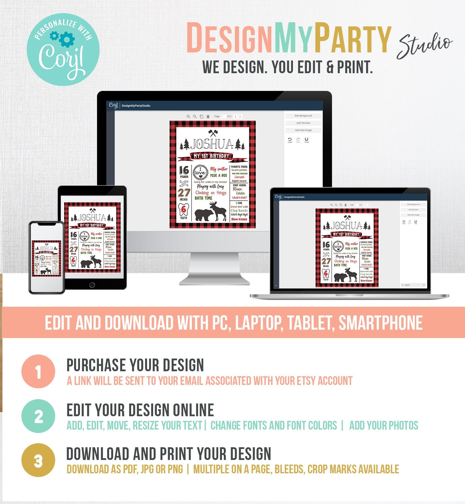 • Editable Lumberjack Birthday Milestones Sign Lumberjack Birthday Chalkboard Plaid 1st Birthday Bear Moose Template Printable Corjl 0377