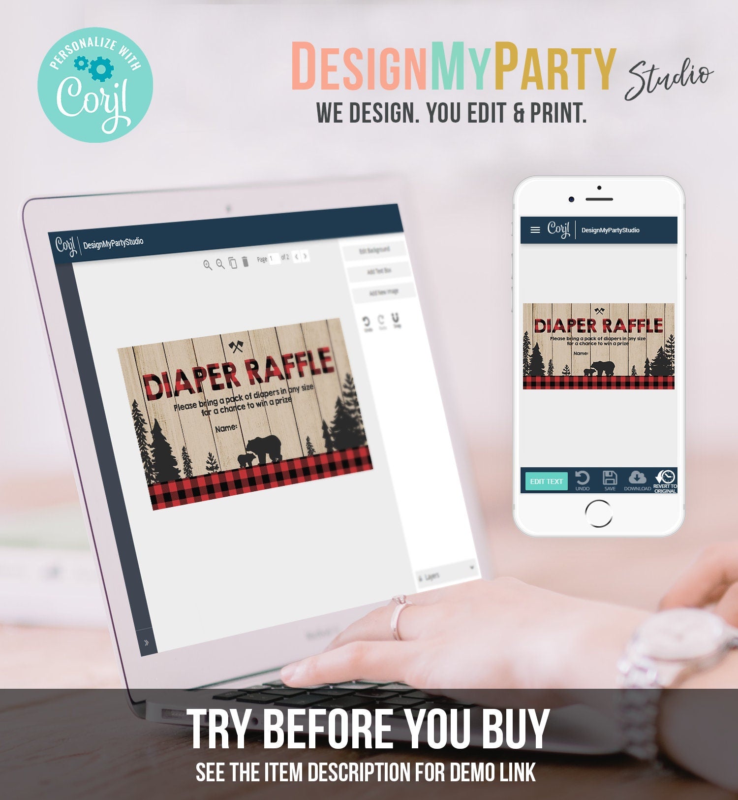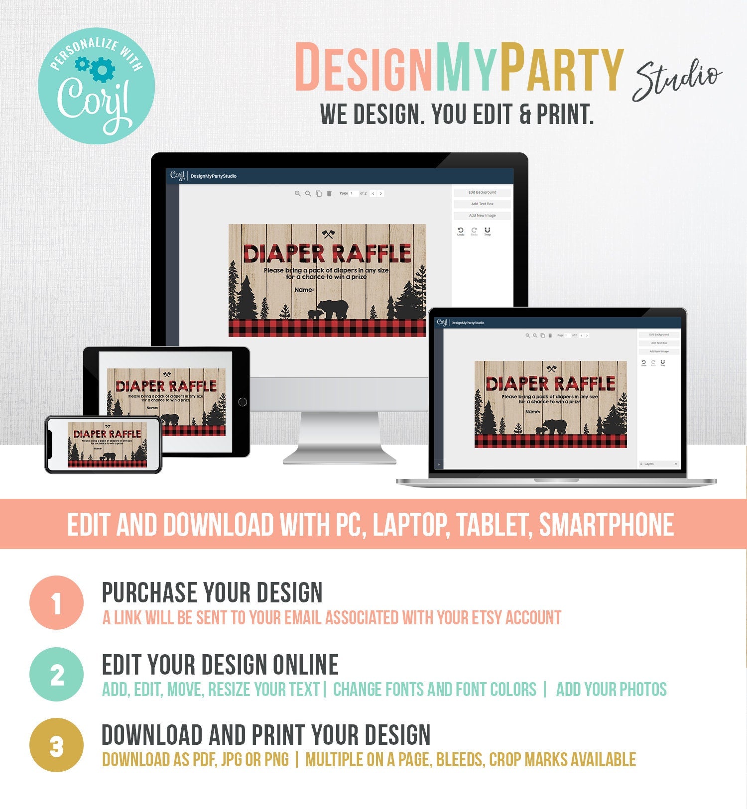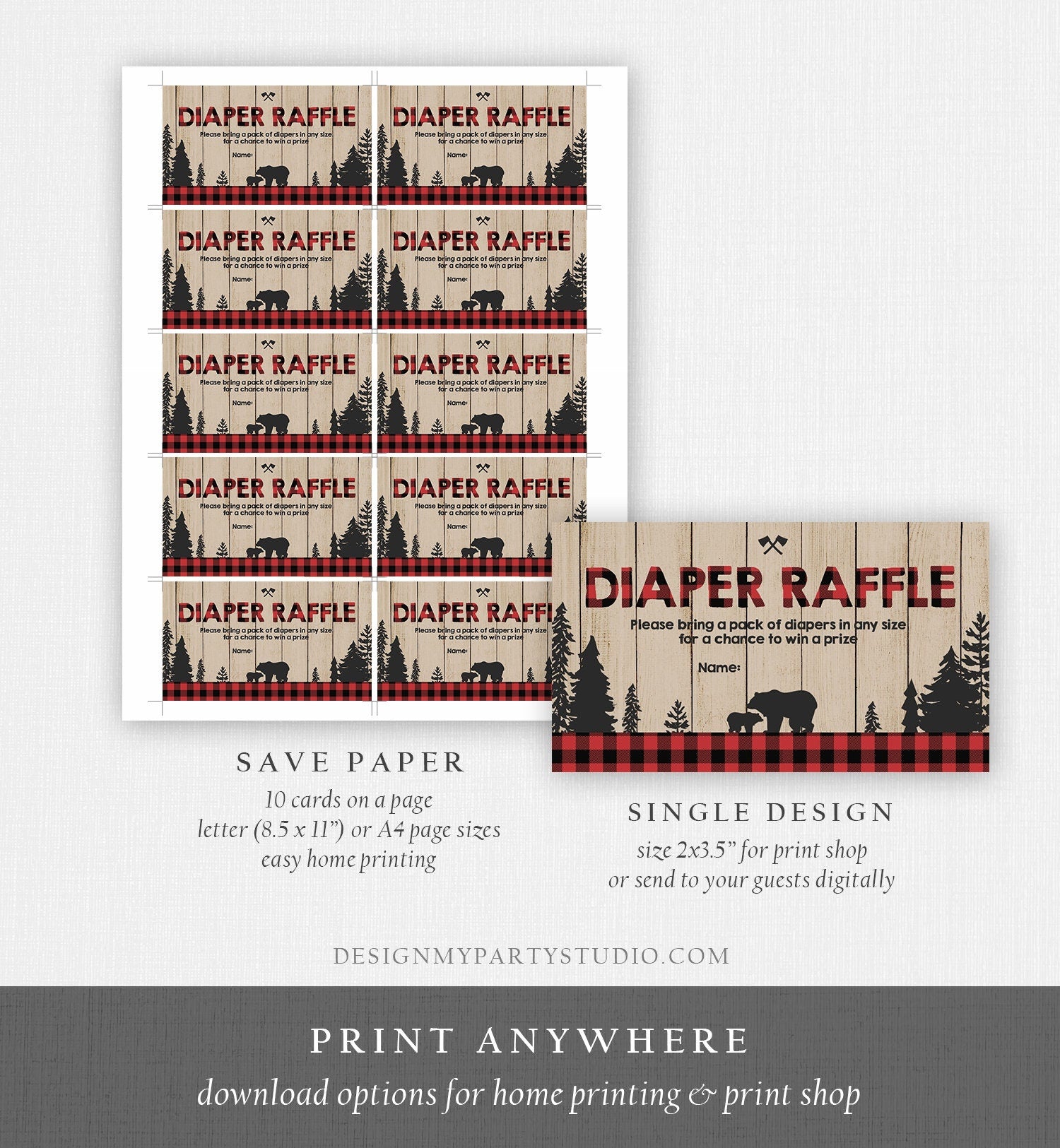 • Editable Lumberjack Diaper Raffle Ticket Lumberjack Baby shower Diaper Game Rustic Bear Cub Diaper Ticket Template PRINTABLE Corjl 0191