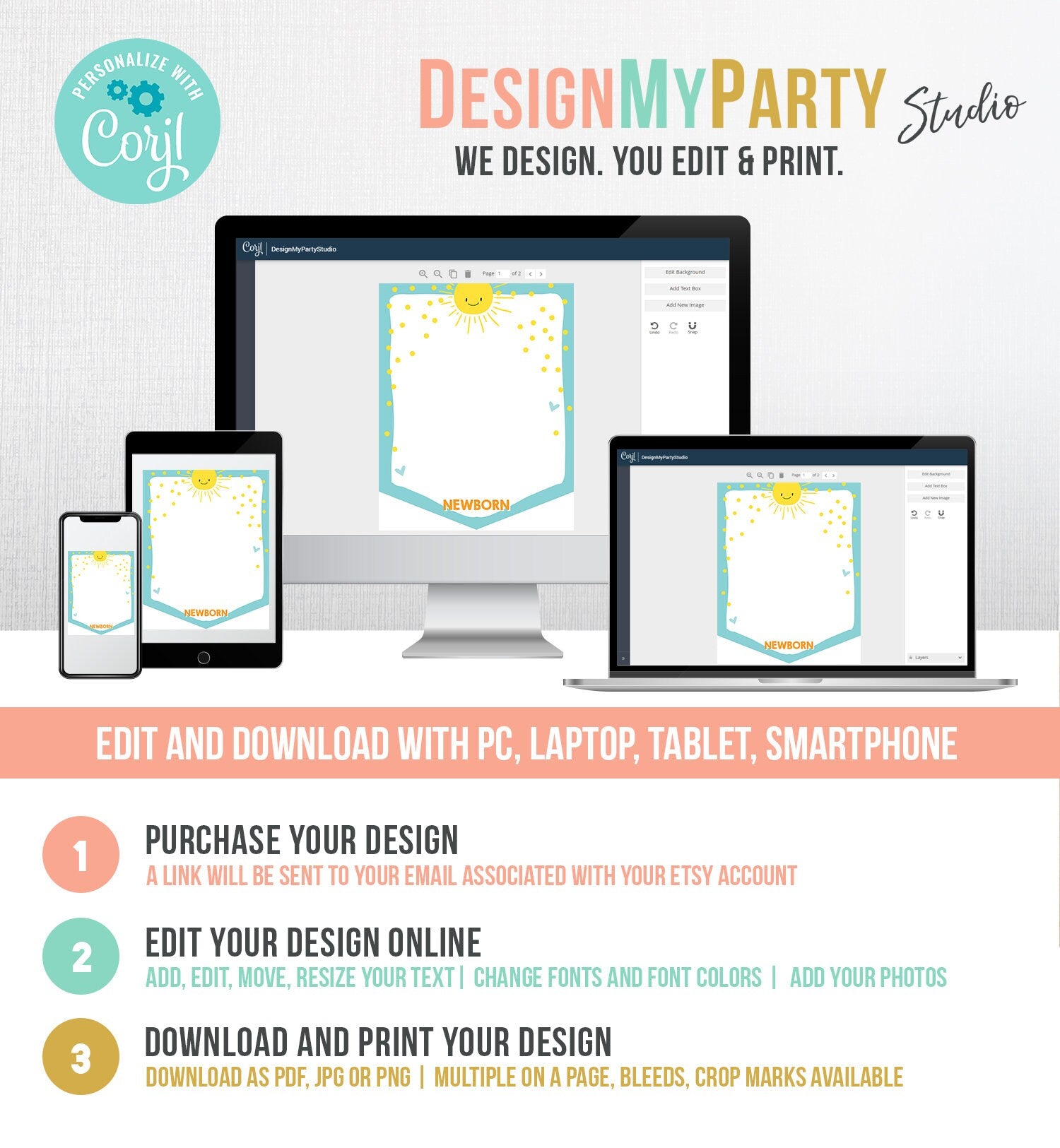 You will receive a link to edit your digital design, no printed items will be shipped!