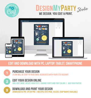 • Editable Outer Space Birthday Invitation Two Infinity and Beyond Birthday Astronaut Rocket Download Printable Template Digital Corjl 0046