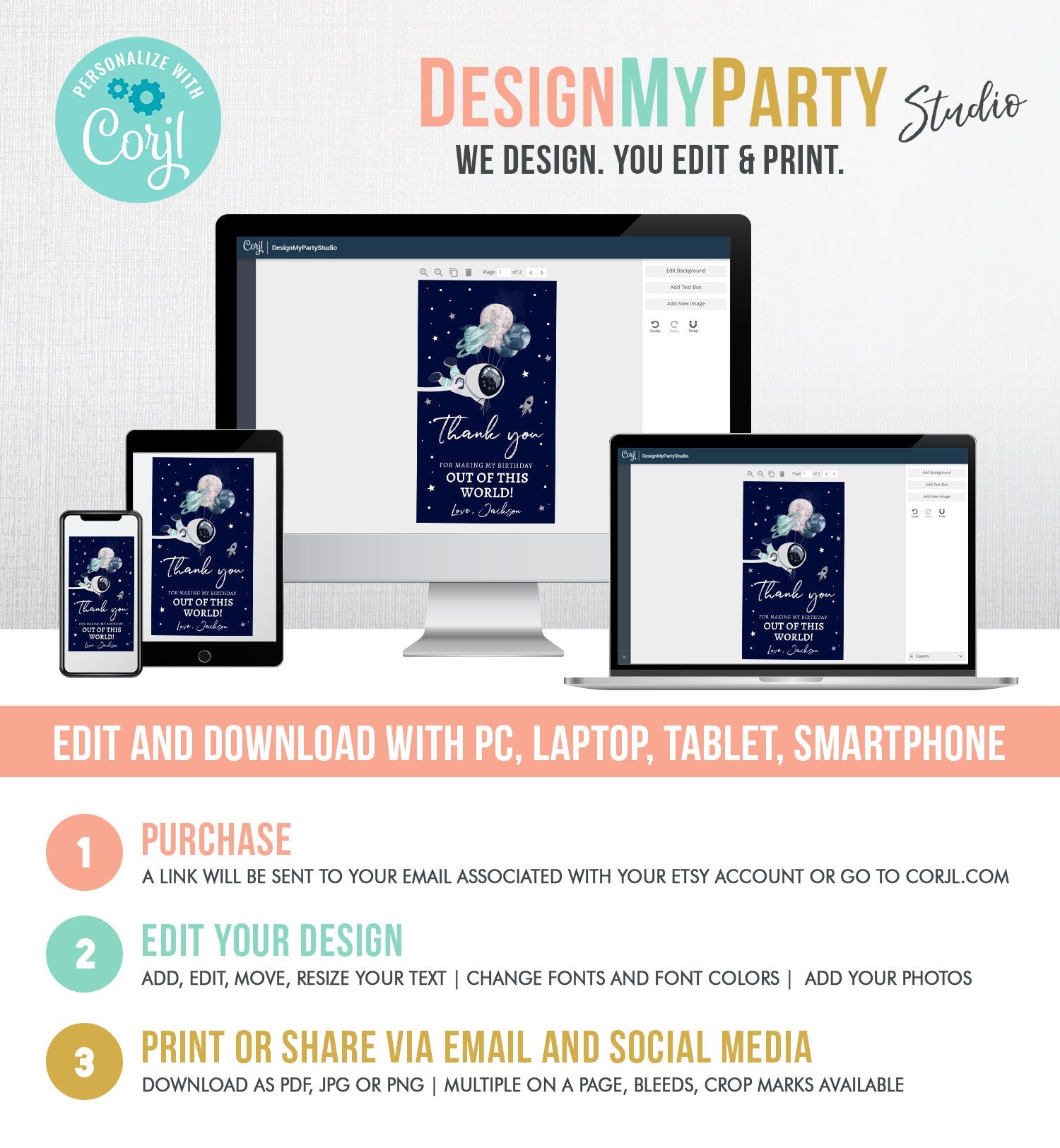 You will receive a link to edit your digital design, no printed items will be shipped!