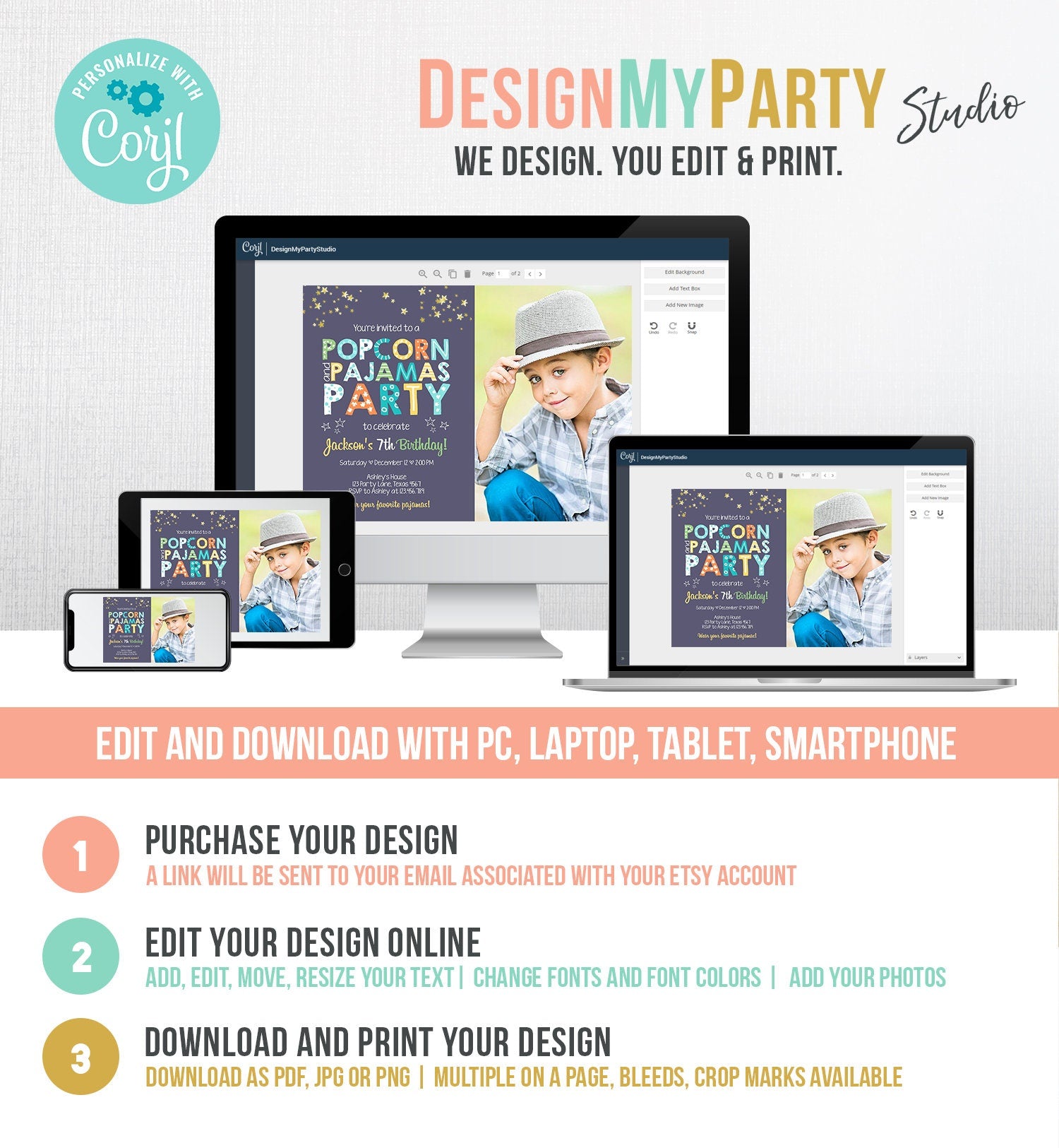 You will receive a link to edit your digital design, no printed items will be shipped!
